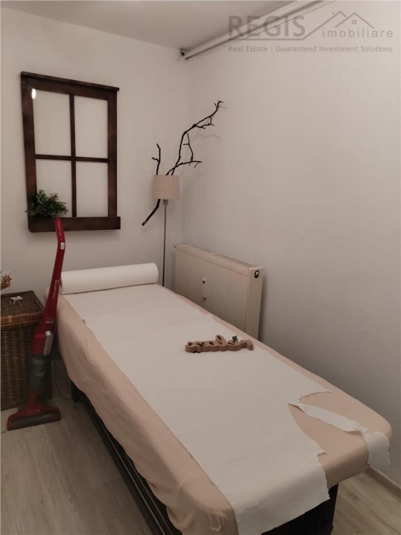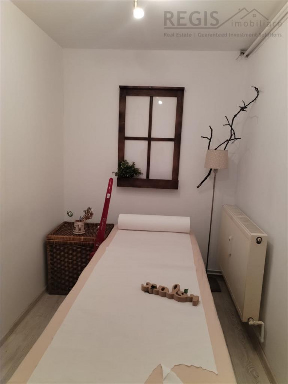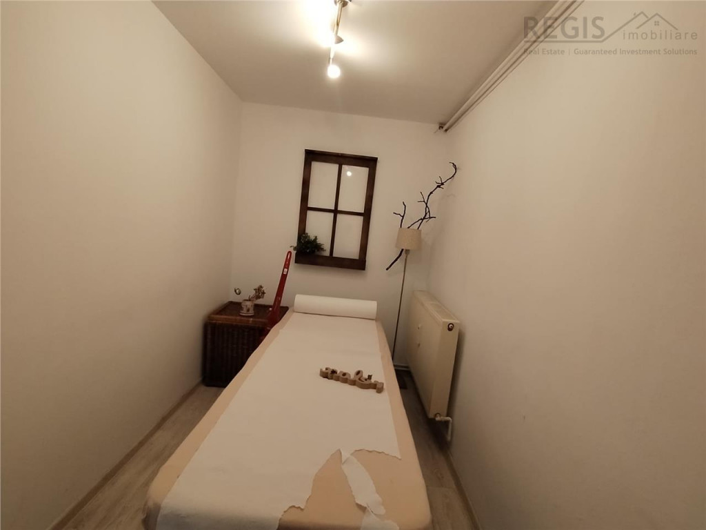 ID intern: 6624 Regis Imobiliare va propune spre inchiriere un spatiu comercial primitor si versatil, perfect adaptat pentru activitati precum birouri, masaj terapeutic, masaj Bowen, consiliere psihologica sau alte servicii din domeniul sanatatii si echilibrului personal. Proprietatea este compartimentata eficient si functional, fiind compusa din: - doua camere luminoase, ideale pentru cabinete individuale; - sala de asteptare confortabila, ce poate fi amenajata pentru a oferi clientilor un ambient relaxant inca de la intrare; - magazie practica pentru depozitare; - toaleta proprie. Spatiul ofera intimitate si liniste, elemente esentiale pentru activitati terapeutice si de consiliere. Compartimentarea permite desfasurarea simultana a mai multor tipuri de servicii sau organizarea eficienta a programarilor. Este alegerea potrivita pentru profesionisti care isi doresc un mediu placut, cald si profesionist, in care clientii sa se simta in siguranta si confort. Conditii inchiriere - o luna garantie Va asteptam la vizionare! Comisionul agentiei este de 50% TVA din prima chirie. Agent Imobiliar- Stefania