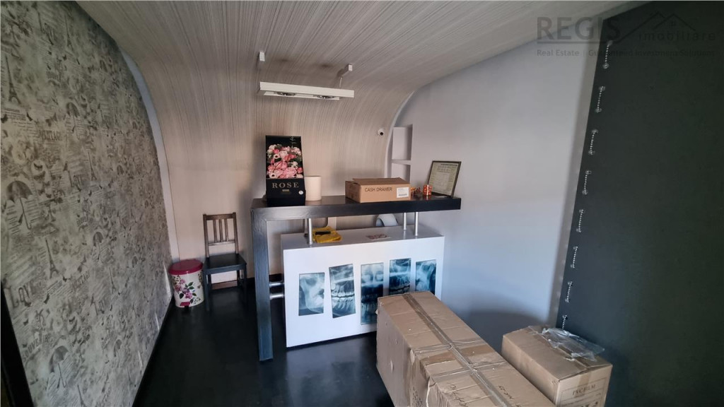 Proprietatea este pretabila pentru clinica , cabinet de stomatologie , aparatura completa pentru dotarea unui cabinet stomatologic poate fi preluata de noul chirias , spatii de birouri , cafenea sau magazin de interes.