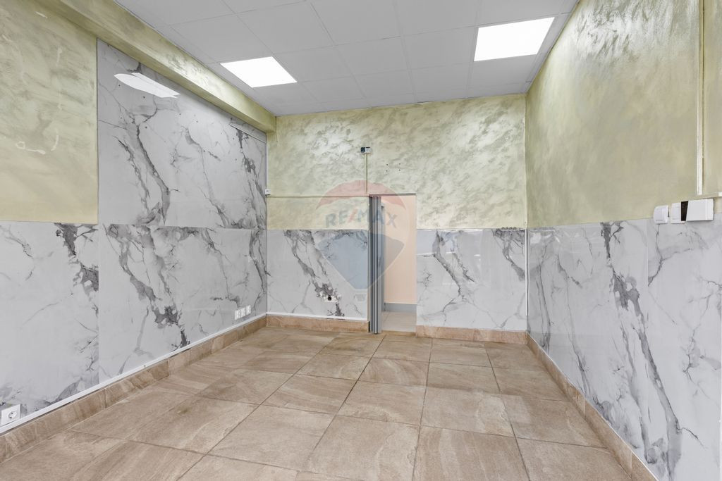 Spațiul are o suprafață utilă de 25 mp și se află la parter, într-o zonă cu trafic pietonal intens. Este compus dintr-o încăpere și un grup sanitar complet utilat.
