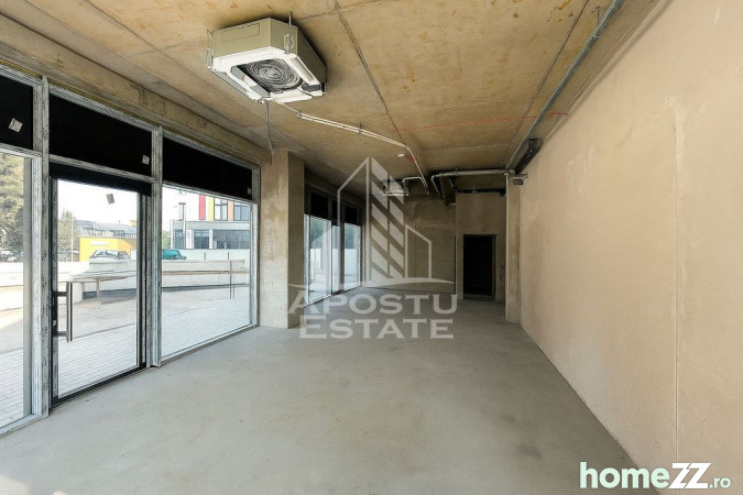 Spațiu comercial open space, cu o suprafață utilă de 65 mp, situat pe colț, în zona centrală a unui complex rezidențial nou – ideal pentru birouri, showroom, cafenea sau magazin