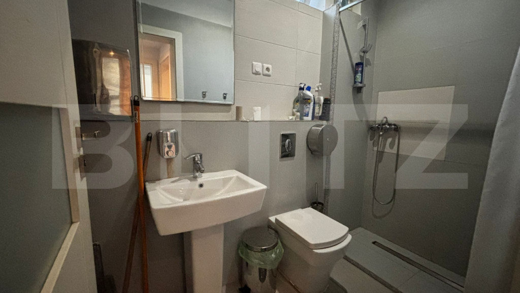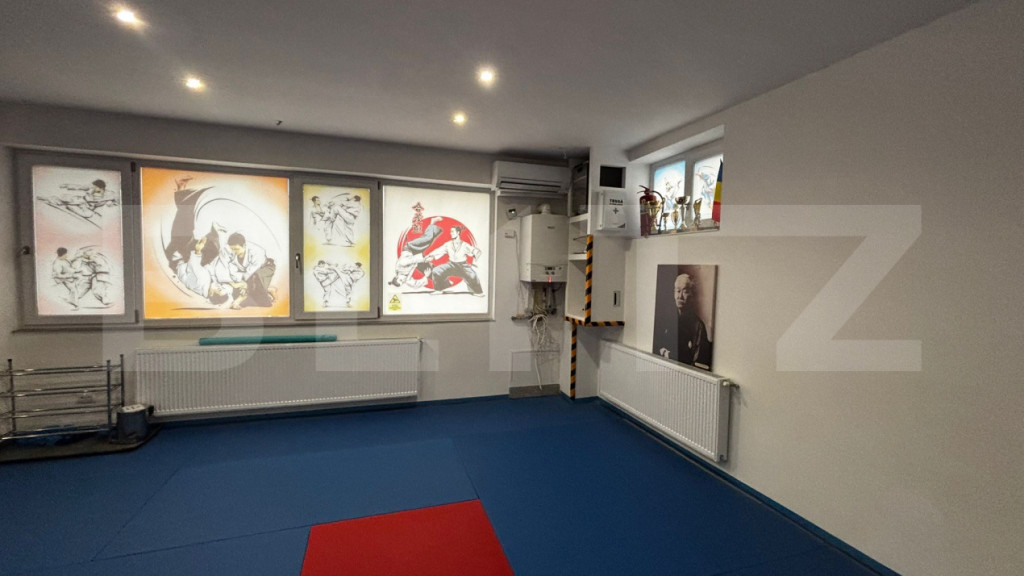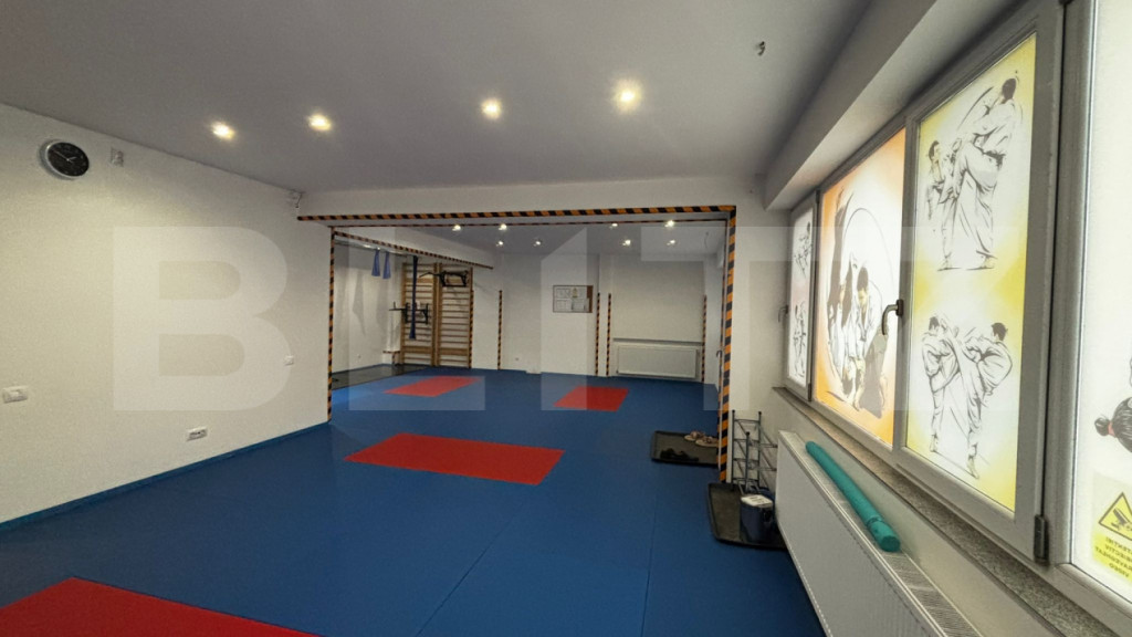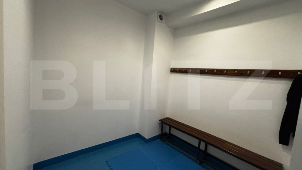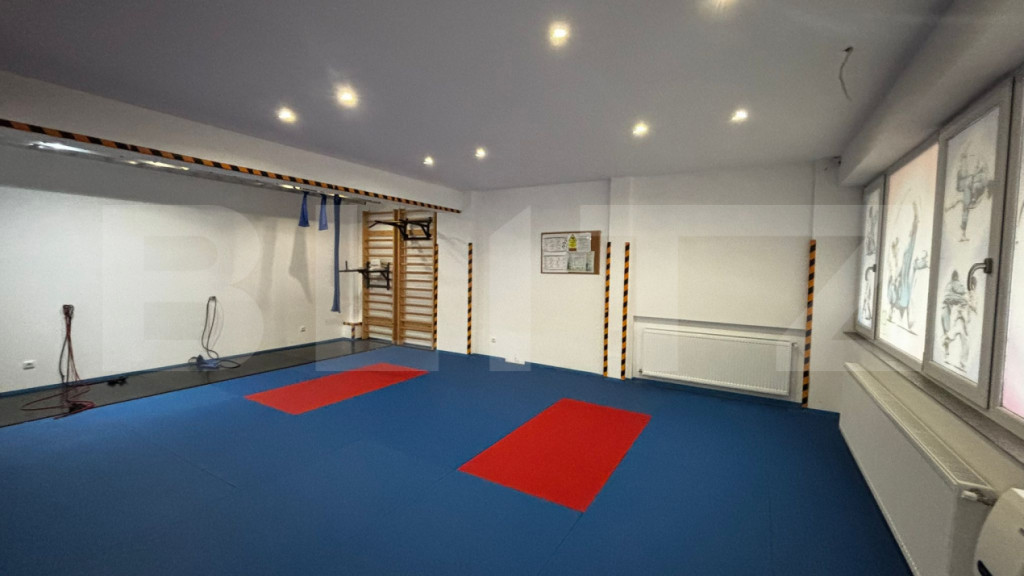 Blitz vă propune un spațiu comercial situat la demisolul unui imobil construit în anul 2019, cu o suprafață utilă de 83 mp și o suprafață construită desfășurată de 135 mp, ideal pentru activități sportive sau servicii. Proprietatea este compartimentată eficient și cuprinde un open space generos în formă de L (folosit anterior ca sală de antrenamente), două vestiare, hol și baie cu duș. Există posibilitatea de adaptare în funcție de activitate, inclusiv se pot monta chiuvete suplimentare în vestiare sau în sala principală. Spațiul beneficiază de un confort termic ridicat datorită izolației exterioare cu polistiren de 10 cm, precum și izolației interioare și a tavanului cu vată minerală. Este dotat cu centrală termică proprie pe gaz, aer condiționat și instalație electrică bine dimensionată, cu multiple prize. Din punct de vedere al securității, proprietatea este pregătită pentru sistem de supraveghere video (cablare pentru 4 camere interior și 2 exterior) și sistem de alarmă (senzori montați). Avantaje: • compartimentare practică, open space tip L • pregătit pentru activități sportive • costuri reduse de întreținere • sistem securitate preinstalat • versatil, ușor adaptabil. Recomandat pentru sală fitness, studio personal training, yoga/pilates, recuperare medicală sau alte activități comerciale similare, mică producție. Situat într-o zonă rezidențială în plină dezvoltare, cu acces facil și potențial bun de trafic local, aproape de CN Pedagogic Stefan Velovan/Parcul Pedagogic. Disponibil imediat pentru vânzare. Vă așteptăm cu drag la vizionare pentru a descoperi dacă această proprietate se potrivește afacerii dumneavoastră! Cod ofertă / ID BLITZ: P168574 Id intern: P168574