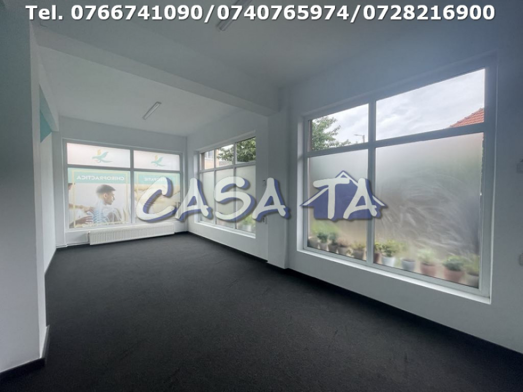 Agentia Imobiliara CASA TA ofera spre Inchiriere Spatiu Comercial, situat la parter pe Strada 22 Decembrie 1989. Spatiul are o suprafata de 113,25 mp, putand fi compartimentat in functie de domeniul de activitate dorit. Contorizare separata gaze. Pretabil pentru diverse activitati economice : farmacii, cabinete medicale, salon de infrumusetare, after school, spatii birouri, zona fiind intens circulata si cu o vizibilitate foarte buna, usor de identificat, in imediata apropiere a Pietii Mici, avand de asemenea si un spatiu de expunere in fata cladirii. Finisaje: gresie, faianta, geamuri termopan, tamplarie PVC, incalzire Centrala Termica individuala, AC, 2 grupuri sanitare, Spatiu depozitare. Utilitati: apa curenta, curent electric, canalizare, gaze, CATV, Internet. In functie de cerintele clientului, se poate inchiria si partial. Pret: 1100 Euro/Luna + 1 Luna Garantie. Telefon: 0766741090; 0740765974; 0742216900; 0728216900. Id intern: P1741