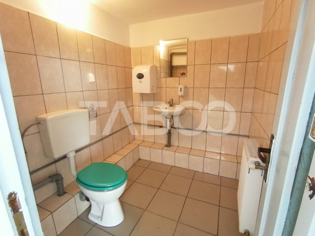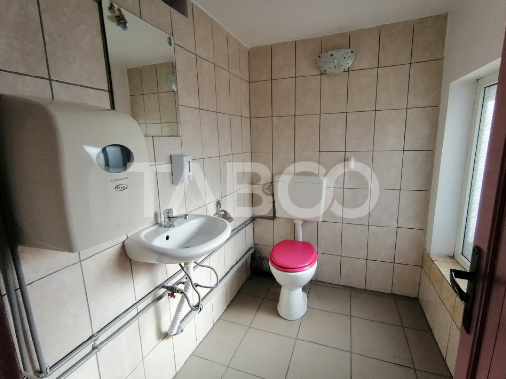 Spatiu comercial de vanzare cu o curte libera de 576 mp, situat in zona Terezian din Sibiu. Situat intr-o casa individuala, acest spatiu comercial este format dintr-o casa pe 2 niveluri, cu 4 camere, 4 grupuri sanitare si 10 locuri de parcare. La parter dispune de 1 camera mare tip open space, un birou, un vestiar si 2 grupuri sanitare, iar la etaj dispune de 1 camera mare tip open space care poate fi compartimentata dupa nevoi si cele 2 grupuri sanitare. Parterul este pretabil pentru un service auto, iar la etaj poate fi folosit ca spatiu birouri, loc de joaca pentru copii, sau diverse activitati economice. Cladirea in care se afla amplasat acest spatiu comercial este o cladire de tip casa, construita in anul 2006, pe structura de caramida. Spatiul dispune de o suprafata de 440 mp utili, cate 220 mp pe fiecare nivel, iar incalzirea acestuia se realizeaza prin centrala proprie si calorifere. In partea din fata a curtii sunt amenajate 10 locuri de parcare iar spatiul se afla intr-o zona accesibila, avand vad auto cat si pietonal. Utilitati | Dotari | Finisaje: ~ Utilitati: curent electric, apa, canalizare, gaz, catv, fibra optica; ~ Izolatii: exterior, bloc izolat termic; ~ Contorizare: apometre, contor electric, contor gaz; ~ Pereti: vopsea lavabila, faianta; ~ Podele: gresie; ~ Geamuri: pvc, termopan; ~ Usa intrare: pvc. Pret: 389.900€ Cod ofertă / ID: P20530 Sună-ne acum la 0369.822.820 și află detalii despre această proprietate de vanzare din Sibiu, dar și despre alte proprietăți potrivite pentru tine. Informatii speciale: 1. Descarcă aplicația pe mobilul tau "TABOO Imobiliare" din Apple Store, Google Play sau Huawei AppGallery pentru a afla instantaneu noile proprietăți care intră pe piață. 2. Dacă ai o proprietate pe care vrei să o vinzi sau să o închiriezi, suntem aici pentru tine! Contactează-ne pentru o evaluare gratuită fără obligații și vei descoperi avantajele de a lucra cu o echipă dedicată și experimentată. 3. Dacă vrei sa incepi o cariera de agent imobiliar, suna la 0369.822.820 si programeaza o intalnire pentru a afla toate beneficiile si avantajele. Intră pe TABOO.ro și descoperă cele mai recente oferte, actualizate zilnic. Anunt actualizat in 5 decembrie 2025. Id intern: P20530