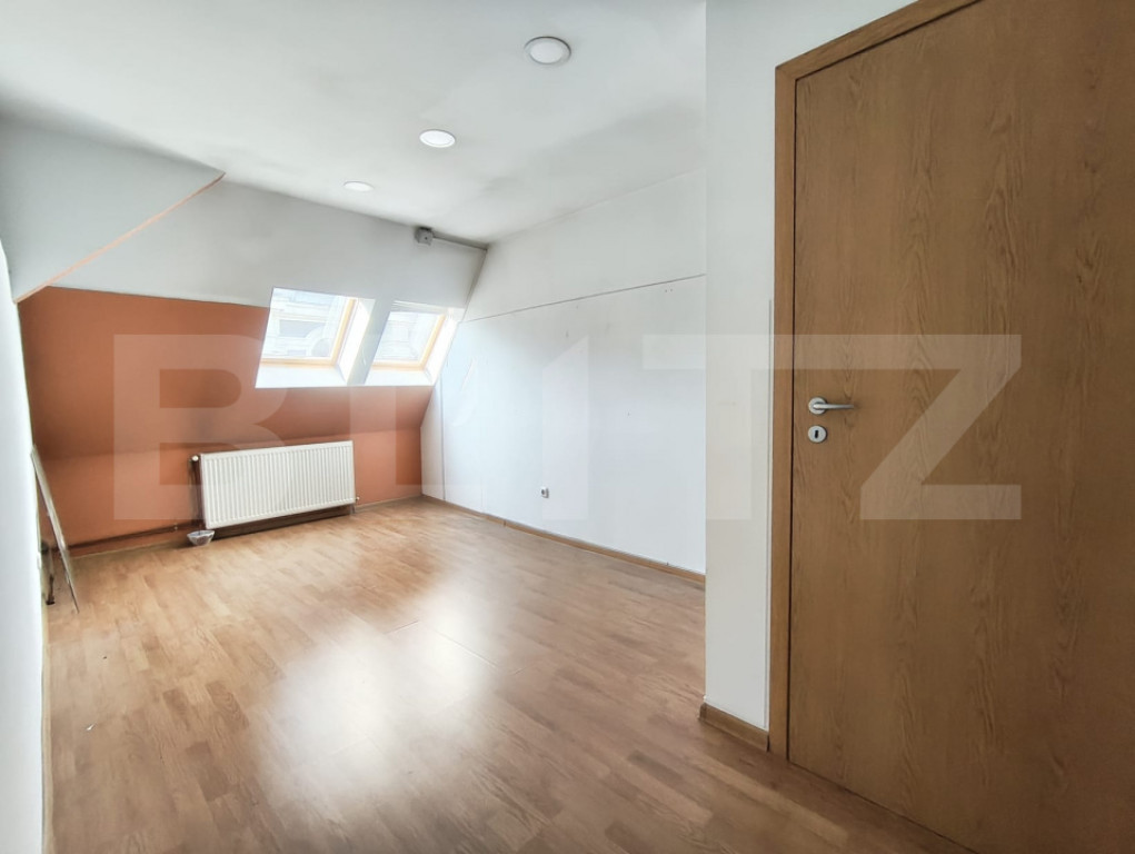 Blitz va prezinta spre inchiriere un spatiu comercial situat ultracentral, aproape de str Republicii, cu vizibilitate stradala si acces facil. Proprietatea are o suprafata totala de aproximativ 210 mp, fiind dispusa pe parter, etaj 1 si subsol. Suprafata de 150 mp este distribuita pe parter si etaj, unde spatiul este compartimentat in 10 incaperi, oferind multiple posibilitati de organizare. Subsolul, cu o suprafata de aproximativ 60 mp, este potrivit pentru depozitare sau spatii auxiliare. In plus, imobilul beneficiaza de o curte mica, utila pentru acces sau diverse activitati logistice. Spatiul dispune de 4 bai, iar intr-una dintre incaperi exista suplimentar o zona separata cu dus. Este dotat cu calorifere si termostate pentru control eficient al temperaturii, precum si cu aparate de aer conditionat, asigurand confort pe tot parcursul anului. Datorita pozitiei ultracentrale, a accesului stradal si a compartimentarii, proprietatea este potrivita pentru birouri, clinica, cabinet medical, salon, centru educational sau alte activitati de servicii. Cod ofertă / ID BLITZ: P162155 Id intern: P162155