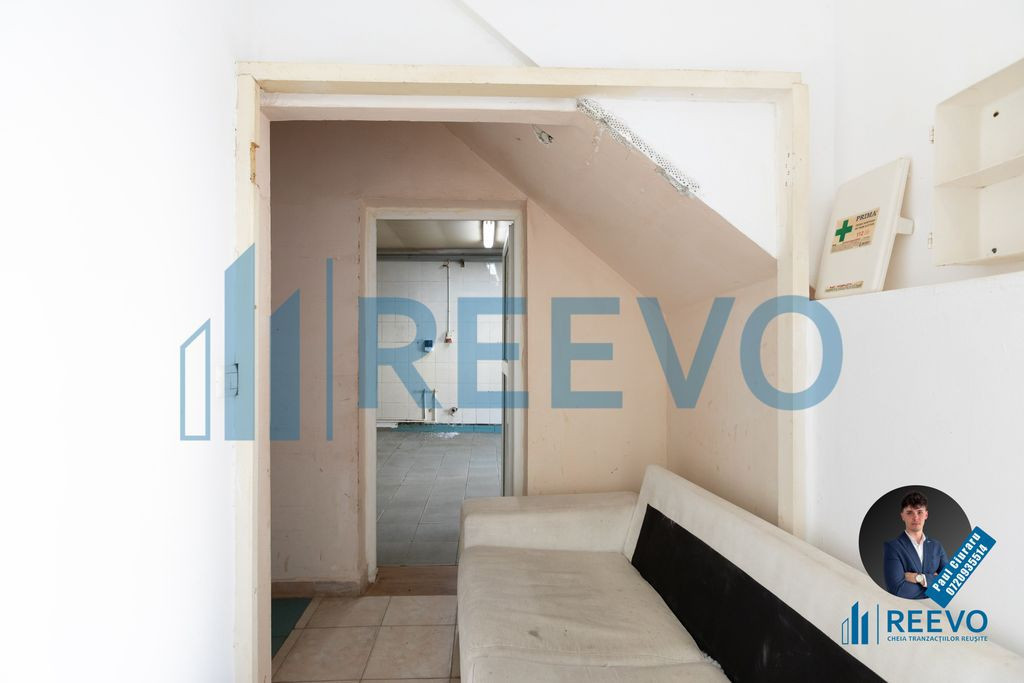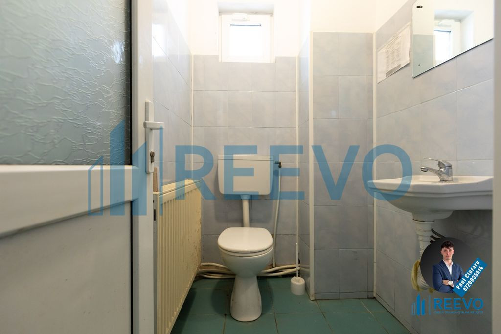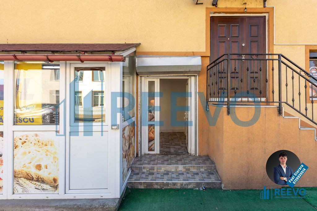 Spațiu comercial de închiriat de 100 mp în Com. Nicolae Bălcescu, str. Școlii, Bacău. Se află lângă școală, primărie, poliție și alte instituții importante. Este amplasat în cel mai tranzitat punct pietonal, oferind vizibilitate maximă și acces facil. Spațiul este dotat cu centrală pe gaz, asigurând confort termic pe tot parcursul anului și reducând costurile de întreținere. De asemenea, dispune de o baie, două camere mari și două mai mici pentru depozitare sau vestiar, ideale pentru orice tip de activitate comercială. Vitrina generoasă este perfectă pentru expunerea produselor sau afișarea reclamelor, atrăgând atenția trecătorilor și a potențialilor clienți. Locația sa centrală face spațiul potrivit pentru afaceri precum magazine, farmacii, cafenele, birouri, brutărie si cofetărie. Proprietarul va reîmprospăta spațiul și îl va amenaja conform cerințelor viitorului chiriaș, adaptându-l pentru diverse domenii de activitate. Aceasta oferă flexibilitate și posibilitatea de a crea un spațiu personalizat. Datorită celor două căi de acces, spațiul se poate închiria pe jumătate, aproximativ 50 mp la prețul de 300 euro. Cu o poziționare excelentă și dotări moderne, acest spațiu reprezintă o oportunitate unică pentru dezvoltarea unei afaceri profitabile. Este locul perfect pentru a atrage clienți și pentru a avea succes! Nu cred că este momentul să mai stai pe gânduri, dar dacă totuși încă nu te-ai convins de beneficiile pe care ți le poate aduce acest spațiu special, atunci te invit la vizionare! Pentru mai multe detalii sau pentru a programa o vizionare, contactează-mă! Pentru mai multe poze, acceseaza site-ul reevo.ro! Paul Ciuraru Consultant Imobiliar REEVO