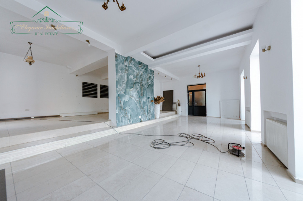Elegance Imobiliare vă oferă spre închiriere un spațiu comercial/de afaceri ultrafinisat la Parter, definit de o eleganță deosebită și o versatilitate remarcabilă, fiind ideal pentru aproape orice tip de activitate care necesită vizibilitate și un cadru de înaltă calitate. Locația se pretează excelent pentru operațiuni de tip showroom, sediu de birouri, sau chiar concepte HoReCa, acestea fiind doar sugestii pentru a ilustra potențialul său amplu. Imobilul a fost construit în anul 2000 pe structură din cărămidă și a beneficiat de o renovare capitală în 2020, fiind adus la cele mai moderne standarde. Spațiul dispune de o suprafață construită de 380 mp, compartimentată funcțional în 5 încăperi generoase și dotat cu 2 grupuri sanitare moderne. Un mare avantaj este terasa exterioară privată de 75 mp (suprafață curte), un element valoros care extinde funcționalitatea spațiului, fiind ideală pentru relaxare sau extinderea activității. Finisajele interioare sunt premium, oferind un ambient sofisticat, cu pardoseli mixte din gresie lucioasă și parchet natural, pereți vopsiți cu vopsea lavabilă și elemente de design distincte, cum ar fi tavanul cu grinzi de lemn aparente. Confortul termic este asigurat de izolația exterioară, tâmplăria PVC cu Termopan, centrala termică proprie și sistemul de aer condiționat. Proprietatea este complet funcțională, fiind racordată și contorizată individual la toate utilitățile esențiale: curent electric (inclusiv trifazic), gaz, apă, canalizare, fibră optică și telecomunicații. Siguranța și mentenanța sunt asigurate prin servicii complete: pază, supraveghere video, acces la curtea comună, administrare și curățenie/îngrijire spații verzi și parcare. Acest spațiu flexibil și gata de ocupare imediată reprezintă soluția ideală pentru o afacere care dorește să îmbine estetica premium cu o funcționalitate de top și o adaptabilitate maximă. Prețul de inchiriere al acestui imobil este de 1.000 euro/luna, negociabil. Pentru mai multe detalii și pentru o vizionare personalizată, contactează-ne la numărul de telefon 0722.144.965. Elegance Imobiliare - partenerul tău de încredere în domeniul imobiliar! Id intern: P207839