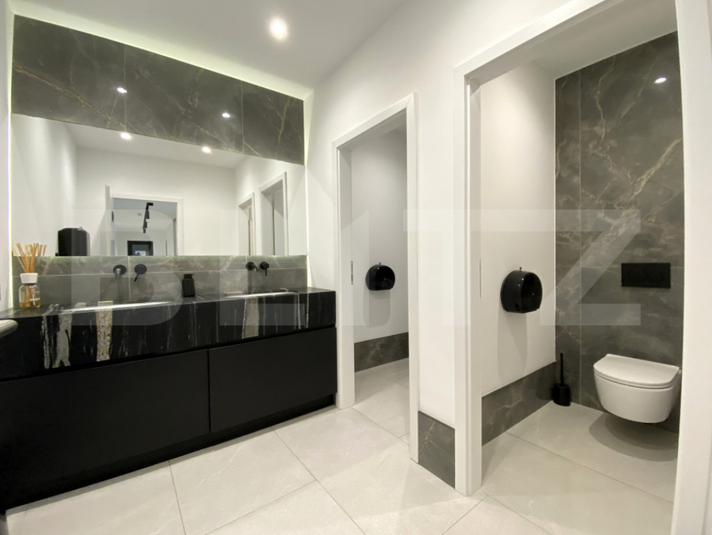 BLITZ ofera spre inchiriere, spatiu comercial generos de 415 mp situat la parterul unui ansamblu rezidential mixt, cu pereti tip cortina de sticla ce ii confera luminozitate sporita si expunere crescuta. Compartimentare de tip open space, cu forma dreptunghiulara, fiind astfel usor de reconfigurat. Dispune de 2 grupuri sanitar, iar pozitionarea in zona de tranzit, cu vizibilitate la strada, il face pretabil pentru diverse activitati comerciale si servicii cum ar fi magazin, showroom, cabinete, cosmetică, sala de sport, sediu bancar, cabinete notariale etc inclusiv alimentatie publica. Se ofera la stadiul de finisat, si dispune de sistem de securitate, sistem de climatizare precum si de spatii de parcari. La pretul afisat se adauga TVA! Pentru mai multe detalii va stam la dispozitie! Cod ofertă / ID BLITZ: P156638 Id intern: P156638