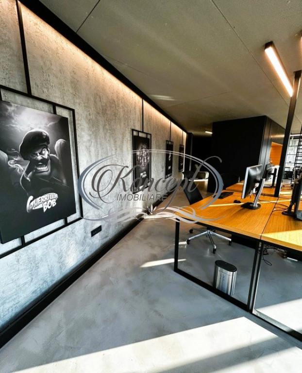 Koncept Imobiliare va ofera spre inchiriere un spatiu pentru birouri in cartierul Zorilor. Spatiul este situat la etajul 4 intr-o cladire premium, are suprafata utila de 125 mp la care se adauga si o terasa de 30 mp. Spatiul este compus din: o zona open-space pentru birouri, un birou privat, sala de sedinte, chicineta cu loc de luat masa complet utilata, receptie, zona de server si 2 bai. Spatiul dispune de finisaje premium, se inchiriaza complet mobilat si ofera sistem de climatizare, wired LAN premium, securitate avansata și 2 locuri de parcare în garajul subteran, prin urmare tot ce aveti nevoie pentru un mediu elegant, modern si profesional de lucru. Disponibil din Iaunuarie 2026. Pentru informatii suplimentare, programarea unei vizionari sau pentru a afla oferta noastra completa, nu ezitati sa ne contactati telefonic, prin e-mail sau la sediul agentiei noastre de pe str. Aviator Badescu nr. 19, Cluj-Napoca. Id intern: P20073