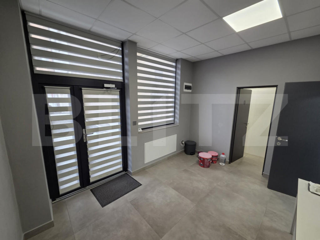 Blitz vă propune spre închiriere un spațiu de birouri generos și modern, cu o suprafață utilă totală de 88 mp, situat la parterul unei clădiri rezitențiale. Spațiul este situat în proximitatea zonei Porolissum, în apropiere de centrul orașului Compartimentarea este făcută astfel: * Intrarea principală în Camera 1 - care conține 2 birouri, zonă de așteptare și spațiu de arhivare/organizare a documentelor. * Camera 2 - poate fi folosită ca intrare secundară, putând găzdui astfel un birou separat sau o sală pentru conferințe, prezentări sau depozitare. Aceasta beneficiază și de apă trasă * Camera 3 - reprezintă intrerea prin spate în camera centralei unde este poziționată și baia de serviciu. Caracteristici & Avantaje: INTERIOR * Spațiu luminos, bine întreținut, finisaje moderne * Open-space versatil, ușor de compartimentat * Spații „la cheie”, pregătite pentru utilizare imediată * Dotat cu numeroase prize electrice, pentru flexibilitate maximă în amenajare * Încălzire în pardosea EXTERIOR * Spațiu cu acces facil și ușor de identificat * Acces la locuri de parcare fără plată, chiar lângă clădire * Spațiu disponibil pe clădire pentru afișarea materialelor publicitare BONUS * Structura și funcționalitaea spațiului poate fi modificată pentru cei care ocupă acest spațiu pe termen lung Spațiul este foarte potrivit pentru companii care prestează servicii consultative sau cabinete individuale, dar și pentru: * Birouri pentru echipe și start-up-uri * Sediu firmă / activități administrative * Workshop-uri și traininguri * Săli de conferință sau prezentări * Cursuri, ateliere creative Spațiu ideal pentru cei care caută flexibilitate, imagine profesională și condiții excelente de lucru, într-o zonă bună a orașului. Cod ofertă / ID BLITZ: P168947 Id intern: P168947