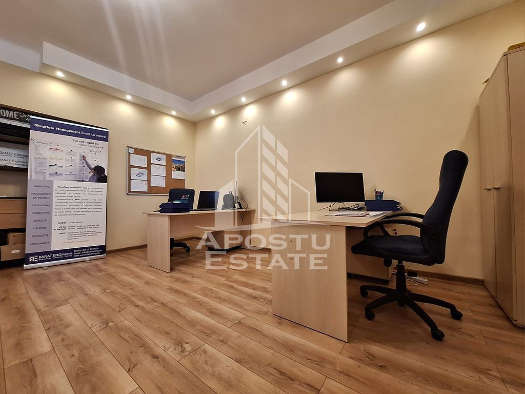 Este potrivit pentru diverse activități comerciale – de la birouri și showroom-uri, până la ateliere de creație sau cabinete.