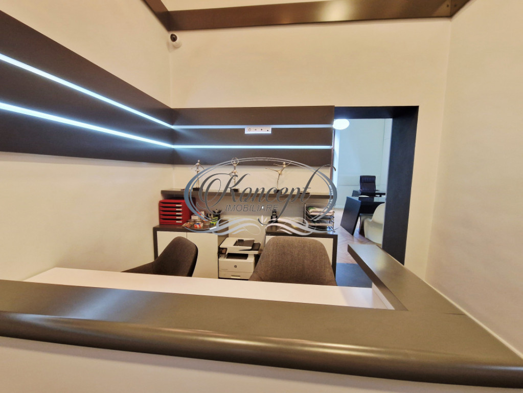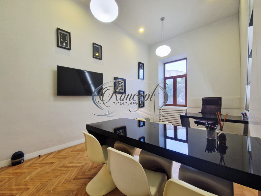 Koncept Imobiliare ofera spre inchiriere un spatiu de birou situat in Piata Mihai Viteazul, chiar langa Cinematograful Florin Piersic, la parterul unei cladiri istorice cu regim D+P+2E. Pozitionarea centrala, intr-o zona cu trafic pietonal intens si acces facil la mijloace de transport in comun, ii confera vizibilitate si accesibilitate sporita. Spatiul are o suprafata utila de 45 mp, compartimentat semidecomandat in doua incaperi, completat de un grup sanitar. Inaltimea interioara de 4 metri si aportul generos de lumina naturala creeaza un cadru optim pentru desfasurarea activitatilor de birou. Accesul pietonal si auto este asigurat, iar parcarea se poate face cu usurinta in zona. Biroul este finisat modern, mobilat si utilat integral pentru activitate office, inclusiv cu xerox multifunctional. Este dotat cu aer conditionat in fiecare incapere, sistem de alarma si supraveghere video. Incalzirea se face prin centrala proprie cu calorifere, ceea ce garanteaza confort pe tot parcursul anului. Spatiul este pretabil pentru orice tip de activitate de birou, fiind potrivit atat pentru firme de consultanta, IT, servicii profesionale sau activitati comerciale cu flux redus de clienti. Disponibilitatea imediata il transforma intr-o solutie eficienta pentru cei care doresc relocare rapida in centrul orasului. Pentru informatii complete, programarea unei vizionari sau pentru a afla oferta noastra completa va stam la dispozitie telefonic, prin e-mail sau la sediul agentiei noastre, pe str. Aviator Badescu, nr. 19, Cluj-Napoca. Id intern: P20744
