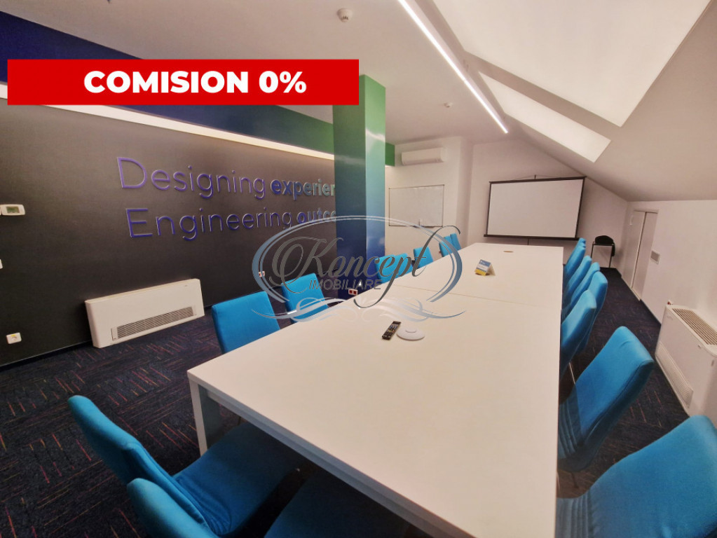 Koncept Imobiliare va ofera spre inchiriere un spatiu de birouri situat intr-o cladire de birouri premium din zona centrala, o locatie strategica pentru companii care isi doresc vizibilitate, accesibilitate si un mediu profesional de top. Spatiul este amplasat la etajul 2 al imobilului si beneficiaza de toate facilitatile necesare pentru desfasurarea activitatilor de business la standarde ridicate. Proprietatea dispune de o suprafata utila de 205 mp si este compartimentata eficient in 9 birouri individuale, camera server dedicata, chicineta, balcon, 2 bai si zona de receptie, oferind flexibilitate in organizarea echipelor si a fluxurilor de lucru. Spatiul este gandit pentru functionalitate maxima, fiind potrivit pentru diverse tipuri de activitati precum sedii de companie, IT, consultanta, servicii sau back-office. Din punct de vedere tehnic, spatiul beneficiaza de finisaje moderne si infrastructura adaptata cerintelor actuale: sistem de ventilatie cu aport de aer proaspat, climatizare prin ventiloconvectoare cu zone independente de temperatura, retea completa pentru IT si comunicatii, precum si camera server dedicata echipamentelor. Cladirea este dotata cu lift, administrare profesionala, acces securizat pe baza de card, acces 24/7 si paza permanenta, asigurand un mediu sigur si eficient pentru desfasurarea activitatii. Un avantaj major il reprezinta includerea in pret a utilitatilor (curent, internet etc.), precum si accesul la facilitati suplimentare, cum ar fi sala de conferinte. De asemenea, sunt incluse 5 locuri de parcare supraterane nominale, un beneficiu esential in zona centrala. Costurile de administrare sunt de 2 euro/mp + TVA si se adauga la pretul de inchiriere. Prin pozitionare, compartimentare si dotari, acest spatiu reprezinta o alegere excelenta pentru companiile care isi doresc un sediu reprezentativ, complet functional si disponibil imediat, facilitand o relocare rapida fara investitii suplimentare. Pentru informatii suplimentare, programarea unei vizionari sau pentru a afla oferta noastra completa va stam la dispozitie telefonic, prin e-mail sau la sediul agentiei noastre, pe str. Aviator Badescu, nr. 19, Cluj-Napoca. Id intern: P21353