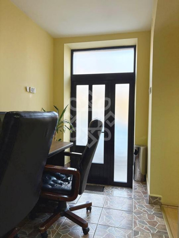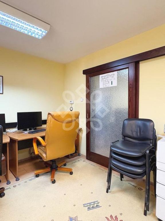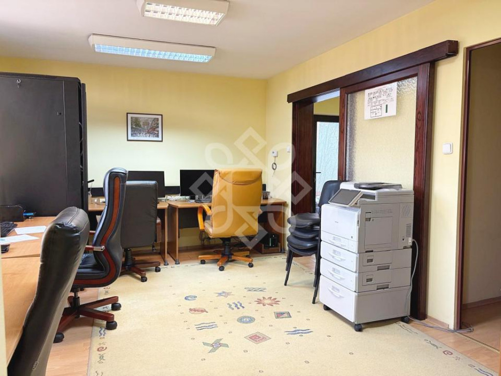 Inside, it is divided as follows: entrance hall, common work space, bathroom, kitchenette, private office with access to the yard. The space was renovated 2 years ago. It is insulated on the outside and equipped with double-glazed windows and doors, benefiting from increased brightness throughout the day.