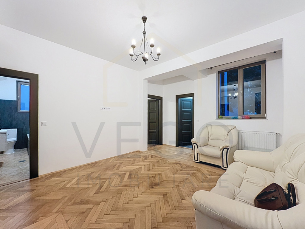 Spațiu de birouri de închiriat, situat în imobil recent renovat integral, poziționat în zona centrală a orașului, aproape de Parcul Central/Platinia/Fabrica de Bere/USAMV/Clinicilor. VEGO IMOBILIARE vă prezintă și vă stă la dispoziție cu acest spațiu de birouri, poziționat la etajul 1 al unui imobil cu doar două apartamente, situat în zona centrală a orașului, oferind acces extrem de facil spre mijloacele de transport în comun, Parcul Central la 1 minut distanță și mall Platinia Shopping Center la 4 minute distanță, facultăți, restaurante, cafenele, parcuri, spații verzi și multe alte puncte de interes în apropiere. Spațiul se desfășoară pe o suprafață utilă de 120 mp, se oferă spre închiriere complet finisat, recent renovat integral, conform fotografiilor de prezentare, în rândul dotărilor menționăm ferestrele termoizolante cu tâmplărie PVC, pardoseală cu parchet natural, pereți cu lavabilă, uși interioare din lemn, iar confortul termic este asigurat pe tot parcursul anului de centrala termică individuală. Compartimentarea este astfel: 4 încăperi, 1 bucătărie, 2 băi, 1 hol acces. Ocupabil imediat. Preț: 1600 euro/lună. Pentru orice alte informații, sau pentru stabilirea unei vizionări, nu ezitați să ne contactați! ID: R936 Id intern: P224842