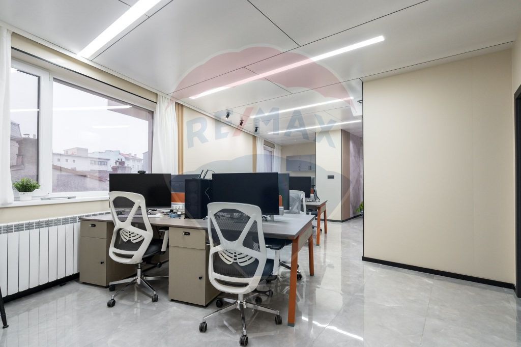Descopera acest spatiu de birouri elegant si functional, perfect pentru dezvoltarea afacerii tale! Situat intr-o zona centrala si accesibila, la doar cateva minute de mers pe jos de metroul Timpuri Noi, acest imobil ofera un mediu de lucru profesional, dotari moderne si un design care imbina eficienta cu confortul. Caracteristici: - suprafata utila 170 mp, intreg etajul 1 - compartimentare: decomandat, 6 camere inclusiv o sala de meeting, o bucatarie, 2 bai si 2 balcoane - dotari: finisaje moderne, aer conditionat in fiecare camera, mobilier office de calitate, parcare privata - acces restrictinat cu bariera - contorizare individuala - accesibilitate: zona centrala, 3-4 minute de mers pe jos de metrou, statie stb la cativa pasi, in zona se gasesc numeroase cladiri de birouri, restaurante, servicii si centre comerciale - vedere spectaculoasa spre cheiul Dambovitei Este ideal pentru sediu firma, cabinet avocatura, IT, cabinet consultanta. Acest spatiu iti ofera un mediu profesional perfect pentru echipa ta si o vizibilitate excelenta cu toate facilitatile necesare pentru o activitate productiva! Pentru mai multe detalii, nu ezita sa ma contactezi!
