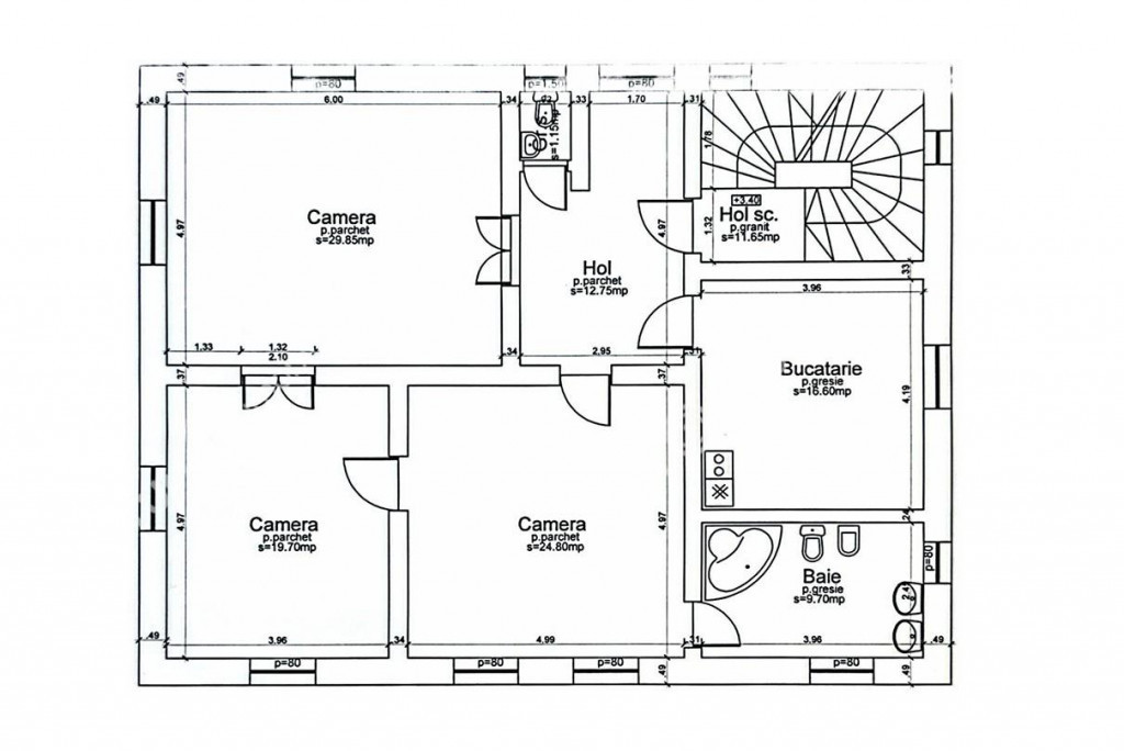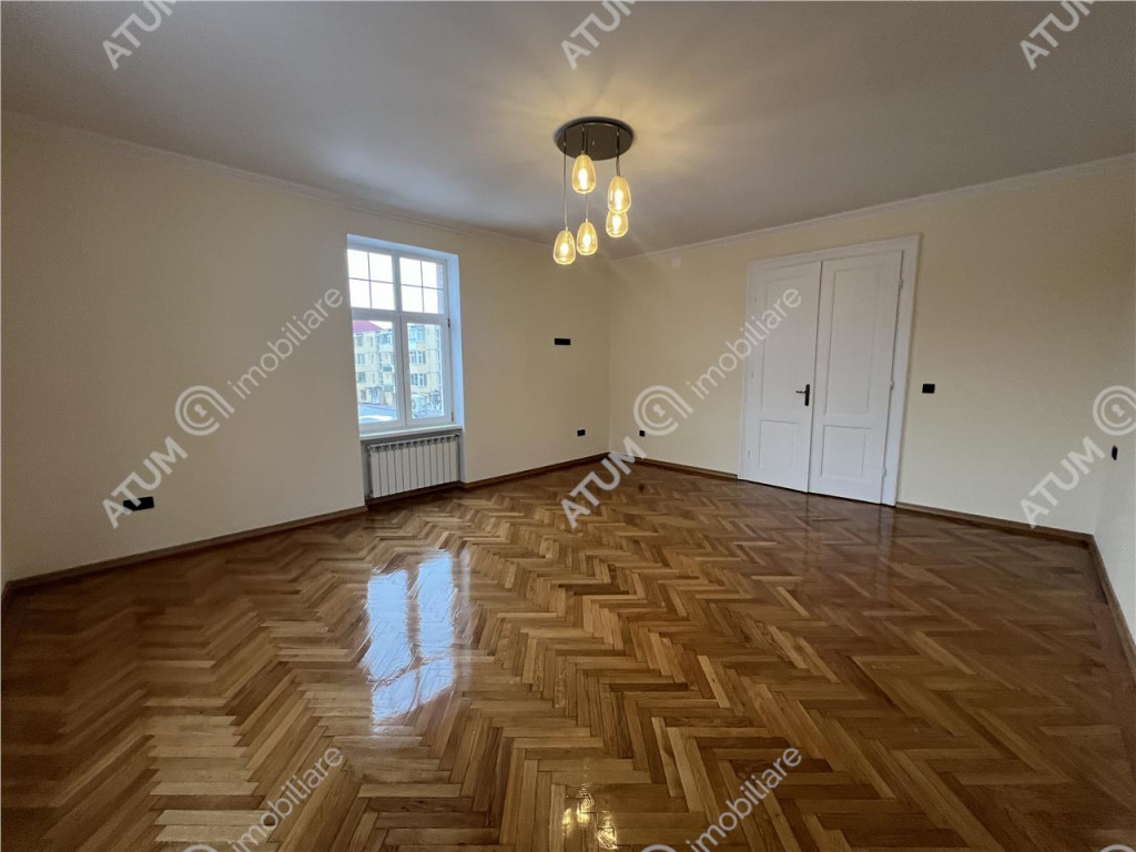 De inchiriat spatiu birouri/comercial complet renovat, compus din 3 camere cu 2 bai, in suprafata totala de 138 mp, situat in zona centrala a Sibiului in apropiere de Facultatea de Stiinte ULBS. Spatiul masoara 114,55 mp fiind compus din 3 camere de 29,85 mp, 24,80 mp si respectiv 19,70 mp, 2 bai dintre cu suprafete de 9,70 mp si respectiv 1,15 mp ambele dotate cu geam de aerisire si cabina de dus, un hol spatios de 12,75 mp unde poate fi amenajata o receptie sau sala de asteptare si o bucatarie separata de 16,60 mp. Imobilul in care se afla spatiul este compus din Demisol Parter Etaj Mansarda, cu acces separat la fiecare etaj. De asemenea si contorizarea utilitatilor se face separat, in functie de etaj. Renovarea facuta in 2025 s-a axat pe modernizarea spatiului, intr-un spatiu de birouri modern si dotat ce poate raspunde oricarei necesitati in desfasurarea activitatilor de birou. Printre modificari si imbunatatirile aduse spatiului mentionam: raschetarea si lacuirea parchetului din lemn masiv de stejar, usi interioare din lemn masiv, instalatie electrica si termica noua din cupru, centrala termica cu calorifere din otel termostatate, tamplarie PVC cu geam termopan, usa de acces din lemn masiv, corpuri de iluminat moderne. Zona in care este situat imobilul, se afla intr-un centru vital al orasului, cu acces usor la institutii cheie: Primaria Sibiu - corpul central si cel secundar, Directia Fiscala Locala, majoritatea birourilor notariale, de avocatura sau alte institutii si birouri conexe dar si spre cel mai mare parc din oras. Valoarea de inchiriere este de 1600 euro negociabil TVA. ID intern: 3216
