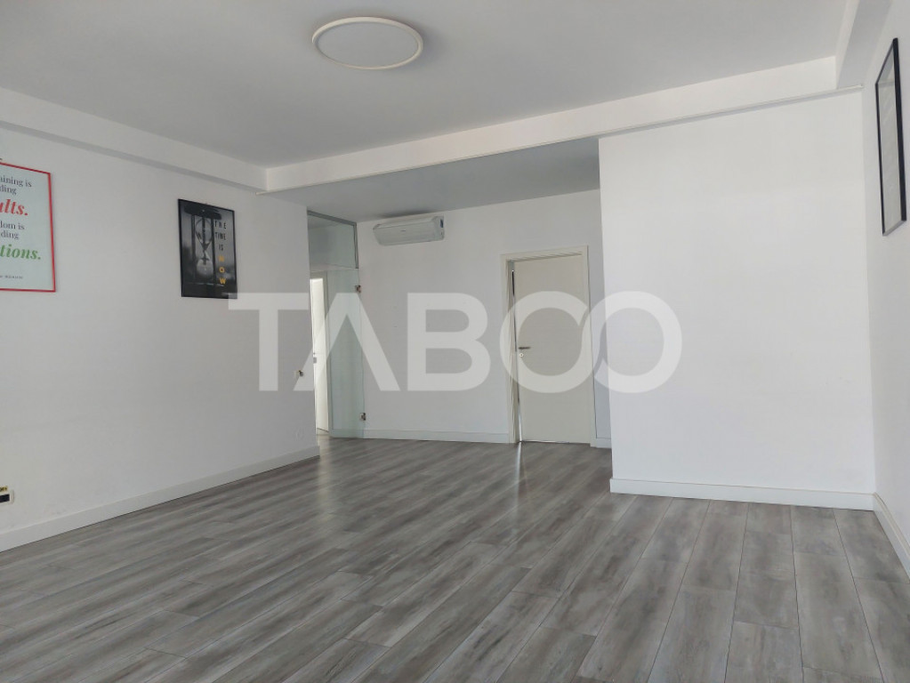 Spatiu de birouri de inchiriat cu o suprafata utila de 107 mp situat intr-o zona excelenta pentru business-urile care necesita spatii moderne. Spatiul este compus din 3 incaperi decomandate finisate frumos, o bucatarie inchisa mobilata, 2 bai spatioase si 2 balcoane. Cladirea este dotata cu lift si are parcare privata securizata cu bariera iar spatiului de inchiriat ii este alocat un loc de parcare. Proprietatea este foarte luminoasa datorita geamurilor mari, incalzirea este realizata prin centrala proprie si incalzire prin pardoseala. In acest spatiu modern se pot desfasura o gama variata de activitati de la activitatea de call center, birouri de contabilitate, arhitectura pana la orice activitate care necesita un spatiu frumos si modern pentru intalniri cu clientii. Pret: 1.170€ + TVA Cod ofertă / ID: P21575 Sună-ne acum la 0369.822.820 și află detalii despre această proprietate de inchiriat din Sibiu, dar și despre alte proprietăți potrivite pentru tine. Informatii speciale: 1. Descarcă aplicația pe mobilul tau "TABOO Imobiliare" din Apple Store, Google Play sau Huawei AppGallery pentru a afla instantaneu noile proprietăți care intră pe piață. 2. Dacă ai o proprietate pe care vrei să o vinzi sau să o închiriezi, suntem aici pentru tine! Contactează-ne pentru o evaluare gratuită fără obligații și vei descoperi avantajele de a lucra cu o echipă dedicată și experimentată. 3. Dacă vrei sa incepi o cariera de agent imobiliar, suna la 0369.822.820 si programeaza o intalnire pentru a afla toate beneficiile si avantajele. Intră pe TABOO.ro și descoperă cele mai recente oferte, actualizate zilnic. Anunt actualizat in 5 decembrie 2025. Id intern: P21575