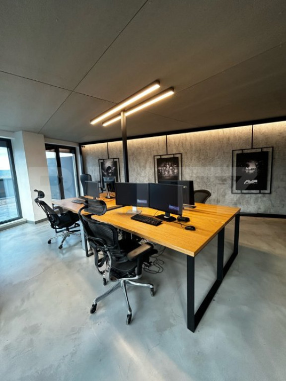 Blitz vă prezintă un spațiu de birouri clasa A, cu o suprafață utilă de 125 mp, situat într-o clădire modernă, recent finalizată, ce oferă toate condițiile necesare desfășurării activităților business la cel mai înalt standard. Spațiul se remarcă printr-un design contemporan, finisaje premium și o compartimentare inteligentă, care asigură atât zone de lucru deschise, cât și birouri individuale și spații pentru întâlniri executive. Lumina naturală pătrunde generos prin vitrajele mari, contribuind la un mediu de lucru confortabil și productiv. Facilități incluse: • 2 locuri de parcare dedicate – unul în parcarea subterană și unul suprateran • Birou complet mobilat, cu mobilier ergonomic de înaltă calitate • Sistem de climatizare centralizat și iluminat LED profesional • Zonă de recepție, sală de ședințe și birou executiv • Spații tehnice și de depozitare bine integrate • Acces securizat în clădire și servicii de administrare Amplasat într-o zonă accesibilă, cu vizibilitate excelentă și conexiuni rapide către arterele principale ale orașului, acest spațiu este alegerea ideală pentru companii din domenii precum IT, consultanță, financiar, arhitectură sau servicii creative. Cod ofertă / ID BLITZ: P145727 Id intern: P145727