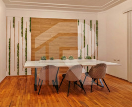 Interiorul impresionează prin finisaje business-class: parchet masiv, iluminat modern cu pendule decorative, pereți în nuanțe sofisticate (roz pudrat, alb, accente de lemn) care creează o atmosferă profesionistă dar relaxantă. Spațiile luminoase cu ferestre generoase asigură lumină naturală excelentă - esențială pentru bunăstarea echipei.