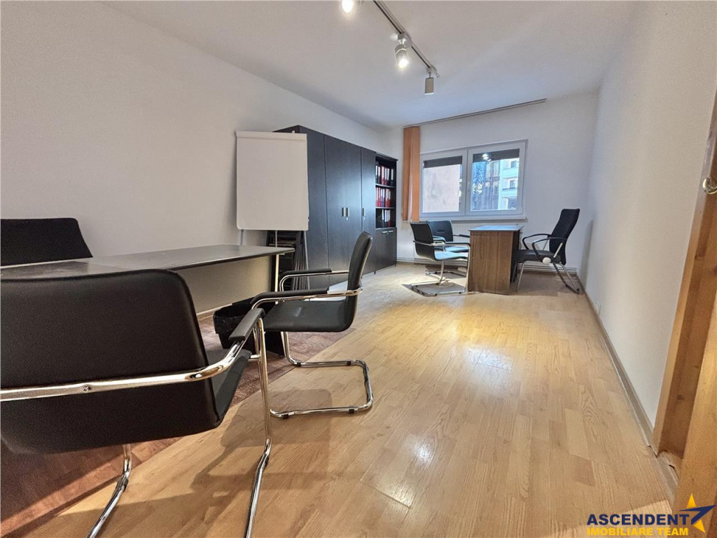 Comision chirias 50% plus TVA. ASCENDENT IMOBILIARE propune spre inchiriere un spatiu de birouri sau activitati conexe, materializat printr-un apartament cu trei camere, in suprafata utila de 74 mp, situat in zona Centrul Civic, pe str. Mihai Viteazul, la parterul unui bloc cu 4 etaje, in proximitatea tuturor punctelor de interes. Apartamentul este spatios, avantajos configurat, fiind foarte accesibil si util lucrului cu clientii, determinand astfel o arie mai larga a activitatilor potrivite. Completeaza oferta faptul ca imobilul este amenajat, dispune de doua bai, iar activitatea poate incepe chiar a doua zi. Mentionam ca spatiul este versatil si pretabil pentru birouri, sediu firma, cabinet, atelier, after-school, salon, etc. Pentru mai multe detalii sau vizionare, va stam cu drag la dispozitie. Telefon / whatsapp 0732847048