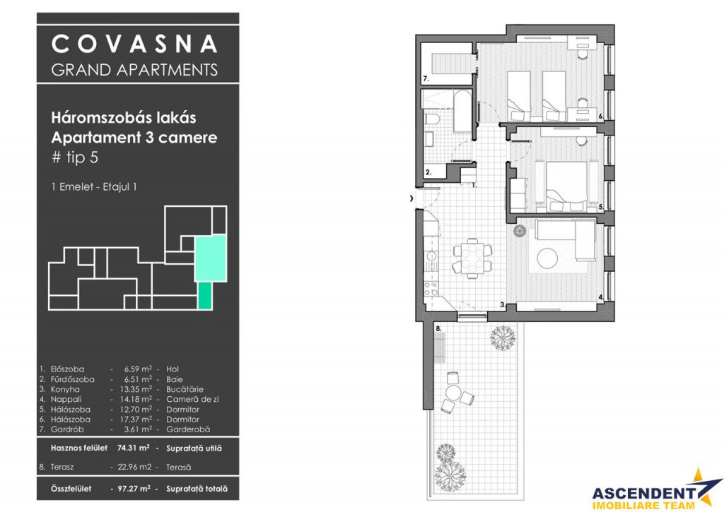 Comision cumparator:0% ASCENDENT IMOBILIARE COVASNA este onorata sa va prezinte spre vanzare un Proiect rezidential / Aparthotel in inima statiunii Covasna, intr-o zona cu potential turistic si imobiliar major. Covasna, o statiune balneoclimaterica importanta in Romania, renumita pentru resursele sale naturale unice, mofetele si apele minerale carbogazoase, este un loc ideal pentru sanatate, liniste si relaxare. Va invitam sa experimentati o vizionare initiala, din locatia unde va aflati, chiar acum, prin accesarea filmului de prezentare: https://www.youtube.com/watch?v=376cneYgN3o Proprietatea este un Spatiu Comercial / Industrial foarte generos, oferind posibilitatea de a fi utilizat in acest scop ndash; comercial / industrial ndash; dar, in special, de a fi transformat in apartamente / aparthotel independente, pornind de la ideea unui proiect deja existent. Astfel, proiectul propus Grand Apartments Covasna cuprinde 6 apartamente independente, cu terasa, cu 3 camere, hol, baie, grup sanitar si bucatarie, cu suprafete utile intre 74-86 mp / apartament. Detaliile privind compartimentarea si suprafata fiecarui apartament se regasesc in planurile Proiectului incarcate in sectiunea Poze. Avantajele unei asemenea investitii: Potential turistic ridicat: Covasna atrage anual mii de turisti interesati de tratamente balneare, wellness (viitorul centru wellness), drumetii, activitati sportive (partia de schi) si culturale. Diversitate functionala: ideal pentru rezidential, aparthotel, turism medical sau investitii pe termen lung. Crestere constanta a valorii: dezvoltarea infrastructurii turistice si medicale din zona sustine aprecierea valorii proprietatii. Invitam colegii la colaborare: garantam agentului / agentiei partenere onorariul aferent! Consilier dedicat alesei oferte: Doamna Braghesiu Claudia Telefon/ Whatsapp 0745157361 Detalii, fotografii suplimentare si alte oferte similare exclusive: va invitam sa accesati site-ul ascendent.ro