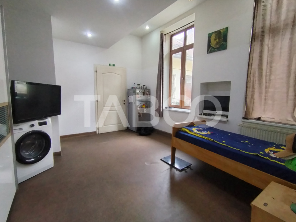 Spatiu de inchiriat, 100 mp, zona Centrul Istoric, Sibiu. TABOO Imobiliare propune un spatiu de inchiriat, pretabil birouri, spatiu comercial, cabinet medical, stomatologic, birou notarial, coafor, situat la casa aflat la etajul 1 intr -un imobil cu regim de inaltime Parter + 1 Etaje; anul constructiei 1840, structura caramida, suprafata utila de 100mp. Spatiul este compus din: 3 camere, hol, 2 bai, spatiu de depozitare. Finisajele interioare sunt: • Usa intrare: pvc; • Usi interioare: lemn; • Tamplarie ferestre: pvc, termopan; • Pereti: vopsea lavabila, faianta; • Podele: parchet, gresie. Utilitati • Utilitati: curent electric, apa, canalizare, gaz, catv, fibra optica; • Izolatii: izolat termic; • Contorizare: apometre, contor gaz, contor curent electric; • Caracteristici : acoperis, curte comuna. Spatiul se inchiriaza nemobilat. Incalzirea se realizeaza prin centrala proprie cu calorifere. Pentru a se inchiria acest spatiu se achita proprietarului chiria + 2 luni garantie. Pret: 650€ Cod ofertă / ID: P25117 Sună-ne acum la 0369.822.820 și află detalii despre această proprietate de inchiriat din Sibiu, dar și despre alte proprietăți potrivite pentru tine. Informatii speciale: 1. Descarcă aplicația pe mobilul tau "TABOO Imobiliare" din Apple Store, Google Play sau Huawei AppGallery pentru a afla instantaneu noile proprietăți care intră pe piață. 2. Dacă ai o proprietate pe care vrei să o vinzi sau să o închiriezi, suntem aici pentru tine! Contactează-ne pentru o evaluare gratuită fără obligații și vei descoperi avantajele de a lucra cu o echipă dedicată și experimentată. 3. Dacă vrei sa incepi o cariera de agent imobiliar, suna la 0369.822.820 si programeaza o intalnire pentru a afla toate beneficiile si avantajele. Intră pe TABOO.ro și descoperă cele mai recente oferte, actualizate zilnic. Anunt actualizat in 5 decembrie 2025. Id intern: P25117