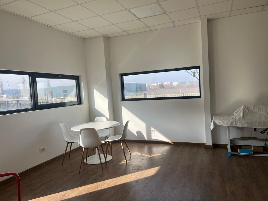 Spatiu industrial de depozitare si productie situat in zona de nord vest a Bucurestiului cu access facil la soseaua de centura Chitila - Mogosoaie Suprafata spatiu depozitare si productie 760 mp ; Suprafata birouri 50 mp ; Inaltime spatiu 6.5 m la cornisa si 8 m la coama; Podea din beton ; Structura din stalpi si grinzi metlice cu inchidere perimetrala din panouri termoizolante tip sandwich; 2 porti de acces TIR si 2 usi acces pietonal Instalație ISU completă: Trape de fum automate Hidranți interiori/exteriori Sistem de avertizare incendii cu senzori de fum Alarme, butoane de panică Lumini de ghidaj, lămpi de siguranță Centrală de incendii La pretul de chiriere se adauga 1 euro/mp +tva ce include și serviciile de administrare ale complexului: Spații de parcare Curățenie platformă exterioară Întreținere spații verzi Apă menajeră și colectare gunoi menajer Sistem de pază cu camere de supraveghere conectate la firmă autorizată Barieră electrică la intrare Spațiul este ideal pentru activități logistice, producție sau depozitare, într-un parc industrial modern și bine întreținut. Utilitati: energie electrica 140 kva,apa,canalizare ;