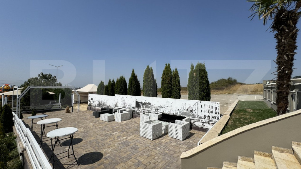 BLITZ propune spre vânzare un spațiu de evenimente compus din clădire D + P + 2E cu o suprafață utilă de 1.570 mp, situată pe un teren de 1.800 mp, în zona Panoramic - Banu Mărăcine. Proprietatea a fost construită în 2018, cu finisaje premium - marmură, travertin, pompe de căldură, încălzire în pardoseală, ventiloconvertoare, lift, ș.a. - este echipată și utilată complet pentru desfășurarea de evenimente (nunți - botezuri - aniversări), fiind în continuare activă, cu o capacitate după cum urmează: - Parter: 200 persoane - Etajul 1: 180 persoane - Etajul 2, cu pergolă: 300 persoane Compartimentarea clădirii este următoarea: - la Demisol avem holuri, lift, bucătărie caldă și rece complet utilate și funcționale, spații refrigerate și de depozitare, birou, spațiu tehnic, vestiare angajați și grupuri sanitare - la Parter se află recepția, sala principală de evenimente, cu ringul de dans, zonă de mese, grup sanitar și lift - la Etajul 1 (supantă) avem sală de mese, grupuri sanitare, cameră cu baie și două terase neacoperite - la Etajul 2 avem o terasă cu acoperiș retractabil unde se află a doua sală de evenimente, holuri, lift, două camere, grupuri sanitare Terenul de 1.800 mp este betonat și amenajat cu terasă și locuri de parcare și se accesează foarte ușor din drumul principal pe alei betonate. Proprietatea este una care vă poate aduce din primul weekend venituri, având în vedere că este funcțională și renumită în circuitul comercial, existând totodată posibilitatea convertirii acesteia în pensiune cu locuri de cazare, sală de evenimente și restaurant sau alte destinații din domeniul HoReCa. Vă aștept cu mai multe detalii și posibilități de dezvoltare afacere la vizionare. Cod ofertă / ID BLITZ: P132071 Id intern: P132071
