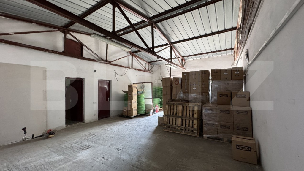 BLITZ vă propune spre închiriere un spațiu industrial cuprins din două hale, una în continuarea celeilalte, prima de 60 mp și cea de-a doua de 276 mp, iar în față spațiu de birouri de 80 mp, în cartierul Valea Roșie, zona industrială Caracal. Terenul pe care sunt construite hala și birourile este însuprafață de 1.601 mp, parțial betonat, curtea având acces tir și fiind împrejmuită cu gard și supravegheată video. Spațiul mai beneficiază de curent trifazic, 2 rampe de încărcare/descărcare tir, două magazii pentru depozitare în partea din spate de cca 150 mp, centrală termică pe gaz pentru încălzirea spațiului de birouri, alimentare cu apă și fosă septică, rețeaua de canalizare fiind prin fața terenului cu posibilitatea de branșare foarte ușoară. Spațiul este ideal pentru depozitare, dar și pentru producție sau alte scopuri industriale, vă aștept la vizionare pentru a identifica în ce măsura se potrivește afacerii dumneavoastră. Cod ofertă / ID BLITZ: P144461 Id intern: P144461