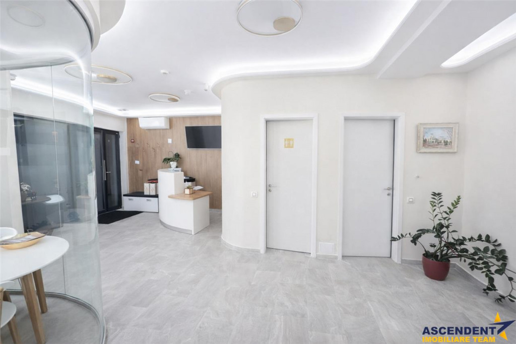 Comision cumparator: 0% ASCENDENT IMOBILIARE este onorata sa va propuna spre vanzare un spatiu cu destinatie recomandata de Centru Medical multifunctional, amplasat strategic in municipiul Brasov, in imediata vecinatate a Coresi Shopping Centre, una dintre cele mai dinamice si cautate zone ale orasului. Proprietatea este situata la parterul unui imobil modern, construit in 2018, si beneficiaza de acces facil, vizibilitate foarte buna si infrastructura urbana completa. Cu o suprafata utila de 196 mp, este conceput si compartimentat special pentru activitati medicale, fiind ideal pentru cabinet stomatologic, clinica medicala ambulatorie, centru de recoltare analize sau concept medical integrat. Functionalitatea este completata de dotari tehnice premium: racordare la reteaua urbana de apa si canalizare, sistem generalizat de prefiltrare a apei in trei etape, centrala termica proprie pe gaz, incalzire in pardoseala, sistem de ventilatie cu recuperare de caldura si filtrare a aerului, precum si aer conditionat. Amenajarea interioara este moderna, coerenta si eficienta, gandita pentru flux medical optim, confortul pacientilor si ergonomia personalului.Unitatea include zona de receptie si asteptare, cabinete medicale multiple (stomatologie, chirurgie, radiologie, recoltare analize), laborator digital de tehnica dentara, spatii de sterilizare, depozitare, camera tehnica, birou administrativ, vestiar personal medical, bucatarie complet mobilata si grupuri sanitare dedicate. Toate incaperile sunt racordate corespunzator la utilitati, cu surse de apa rece si calda acolo unde este necesar, respectand cerintele functionale ale activitatii medicale. Proprietatea se vinde mobilata, fara aparatura medicala, oferind viitorului proprietar flexibilitate maxima in personalizarea si adaptarea activitatii. Designul interior este luminos, curat, profesional, inspirand incredere si standard ridicat de calitate, un aspect esential in domeniul medical. Zona completeaza excelent valoarea locativului: acces rapid catre aeroportul international Brasov, soseaua de centura si principalele artere de legatura cu Bucuresti si vestul tarii, precum si proximitate imediata fata de mall, transport public, parc, restaurante, scoli, gradinite si centre de agrement. Cartierul Tractorul este recunoscut ca una dintre cele mai puternice zone de dezvoltare urbana din Brasov, cu un trecut industrial solid si un prezent orientat spre servicii moderne si investitii sustenabile. Caracterul sau special, nivelul de dotare si pozitionarea strategica recomanda acest spatiu celor care cauta nu doar o locatie, ci o baza solida pentru dezvoltarea unui proiect medical de succes. Consilier specializat pe aleasa oferta: domnul Anghel Livius Telefon/ WhatsApp: 0767 465 686 Detalii, fotografii suplimentare si alte variante similare exclusive: www.ascendentimobiliare.ro