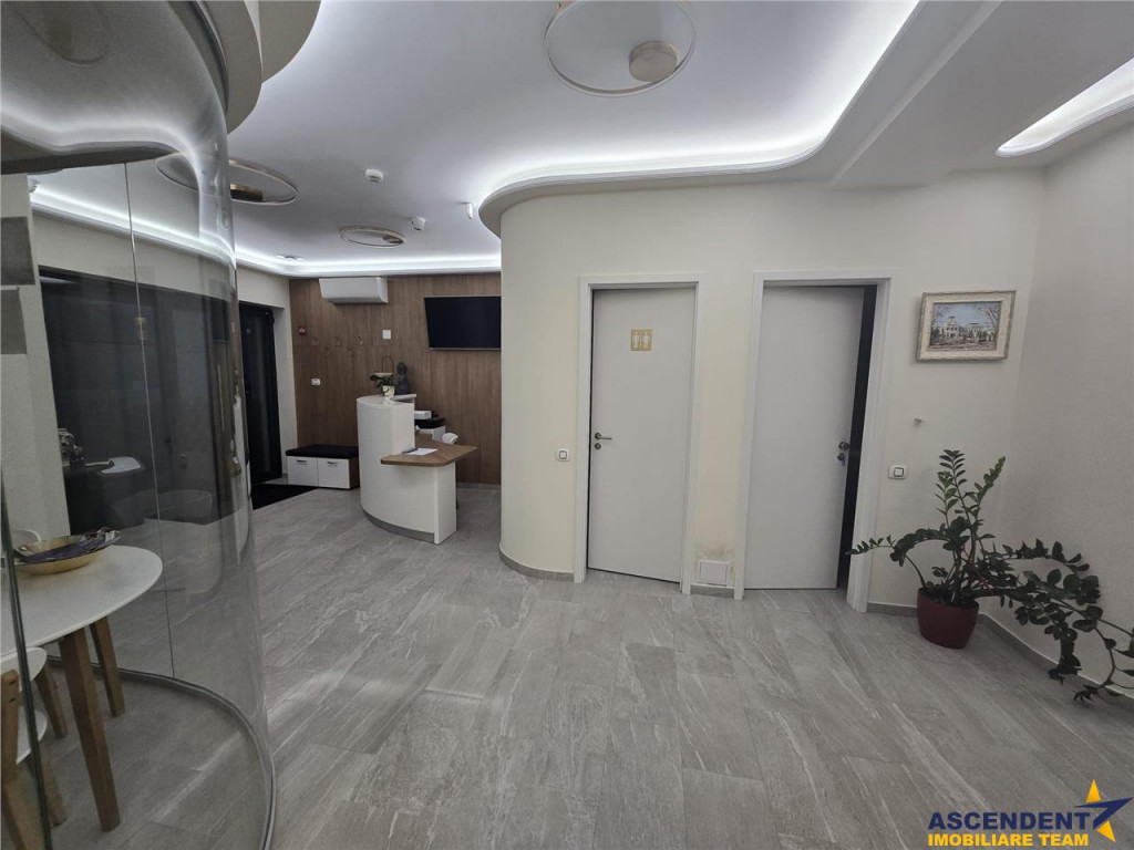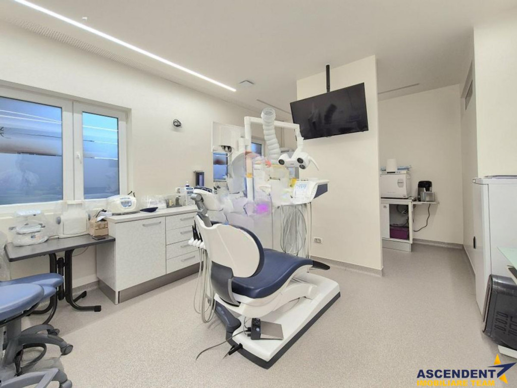Comision chirias 50% din prima luna o singura data ! Ascendent imobliliare va propune spre inchiriere un spatiu medical premium, cu functionalitate completa si infrastructura deja validata, situat in municipiul Brasov, in imediata apropiere a Coresi Shopping Centre, cartier Tractorul ndash; una dintre cele mai dinamice si cautate zone ale orasului. Imobilul este recomandat pentru activitati medicale si paramedicale, avand deja activitate de cabinet stomatologic in desfasurare, ceea ce ofera un avantaj major: posibilitatea preluarii clientilor existenti si a vadului format. Este o oportunitate si pentru profesionisti care doresc un start rapid, fara perioada lunga de pozitionare pe piata. Unitatea dispune de doua intrari separate, una pentru personal si una pentru clienti, asigurand fluxuri corecte si respectarea normelor medicale. Este racordat complet la reteaua urbana de apa si canalizare si beneficiaza de doua locuri de parcare incluse in valoarea expusa, cu acces securizat prin bariera, precum si posibilitate de parcare publica in fata cladirii pentru pacienti. Confortul si siguranta sunt sustinute de dotari tehnice avansate: sistem generalizat de prefiltrare a apei in trei etape, centrala termica proprie, apa calda, incalzire in pardoseala, sistem de ventilatie cu recuperare de caldura si filtrare a aerului, aer conditionat. Finisajele sunt conforme standardelor medicale, cu suprafete lavabile si rezistente la dezinfectanti, iluminat natural generos si iluminat artificial adaptat activitatii medicale. Accesul se face inclusiv prin rampa din exterior, facilitand accesul persoanelor cu mobilitate redusa. Bucataria si receptia sunt mobilate si dotate, singura exceptie fiind scaunul stomatologic, care nu este inclus. Configuratia functionala este una extrem de bine gandita, rara pe piata, permitand desfasurarea simultana a mai multor specializari medicale. Include zona de receptie si sala de asteptare, cabinete de consultatii si stomatologie cu mai multe posturi de lucru, cabinet de chirurgie si implantologie, cabinet de recoltare analize, cabinet radiologie, laborator digital de tehnica dentara, spatiu de sterilizare, camera tehnica pentru filtrare apa si deseuri medicale, spatii de depozitare, grup sanitar personal, vestiar pentru personal medical, camera administrativa si filtru pacient. Toate incaperile care necesita apa sunt racordate la reteaua de apa rece si calda si canalizare. Localizarea completeaza perfect valoarea spatiului. In doar cateva minute se pot accesa mall-ul Coresi, parcuri, mijloace de transport in comun, restaurante, scoli, gradinite, centre sportive si de agrement, cluburi si alte puncte de interes major. Zona este intens circulata, cu vizibilitate excelenta si un profil de clienti potrivit pentru servicii medicale moderne si premium. Proprietatea este disponibila la vizionari cu programare telefonica, desigur ca particularitatea ofertei, invita la cunoasterea in detaliu prin vizionarea acestuia. Consilier specializat pe aleasa oferta: domnul Anghel Livius Telefon/ WhatsApp: 0767465686 Detalii, fotografii suplimentare si alte variante similare exclusive: www.ascendentimobiliare.ro
