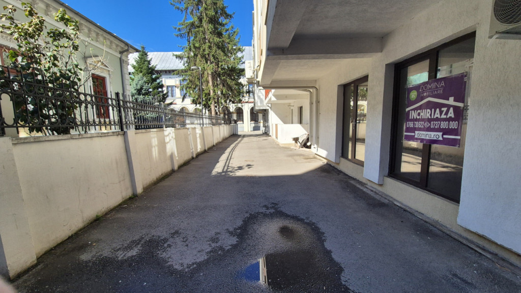 Spatiu de birouri de închiriat – Târgu Jiu, strada Geneva - zonă centrală. Domina Imobiliare vă propune spre închiriere un spațiu ideal pentru birouri, situat în Târgu Jiu, pe strada Geneva, în imediata vecinătate a: Școlii Gimnaziale „Alexandru Ștefulescu”, Universității „Constantin Brâncuși”, la doar câteva minute de mers pe jos de zona pietonală centrală. Localizare excelentă, cu acces rapid către toate punctele de interes din centrul orașului. Detalii proprietate: Suprafață totală: 60 mp; Compartimentare: decomandat; Componență: 2 încăperi spațioase, bucătărie, hol și baie; Etaj: Parter într-un imobil nou, cu regim de înălțime P+3 retras. Finisaje și dotări: Gresie și faianță moderne în tonuri neutre; Parchet laminat; Tâmplărie PVC cu geam termopan; Centrală termică proprie ARISTON; Încălzire în pardoseală – confort termic și eficiență energetică; Ușă metalică la intrare. ✅ Avantaje: Imobil nou, cu finisaje actuale; Acces imediat către centrul pietonal; Loc de parcare propriu inclus; Spațiul se închiriază nemobilat, oferind libertatea de amenajare în funcție de necesitățile chiriașului. ID/COD ofertă: P1178 Vrei să vezi mai multe oferte similare? Ne poți contacta la numărul de telefon 0737 800 000 sau pe domina.ro. Id intern: P1178