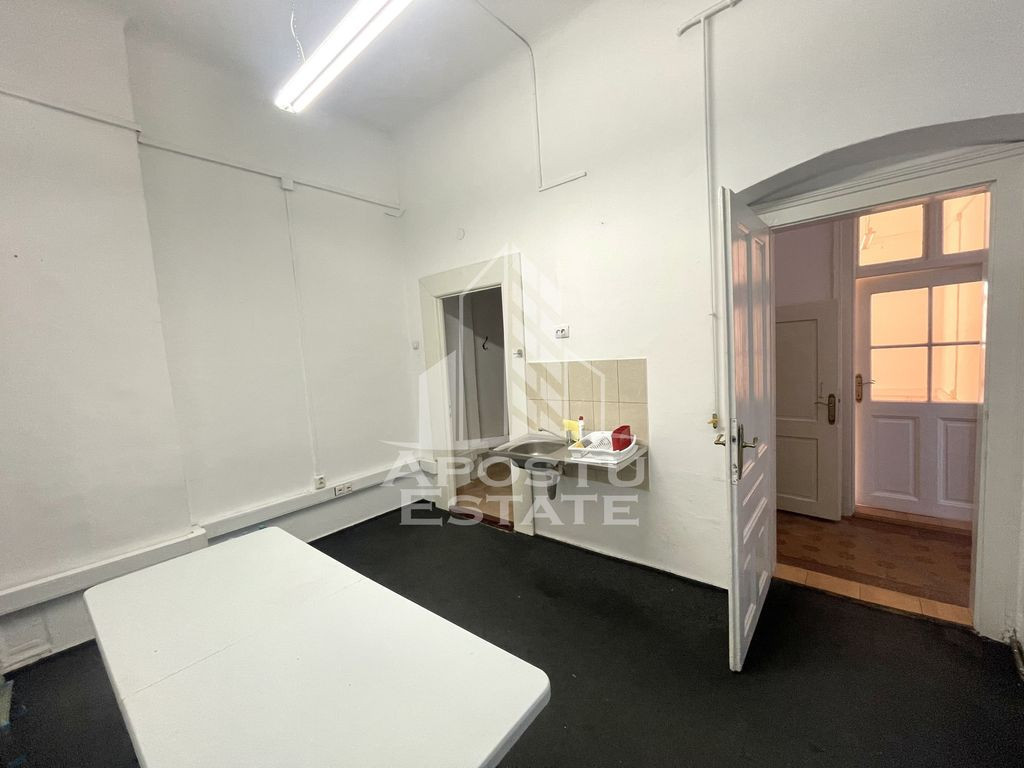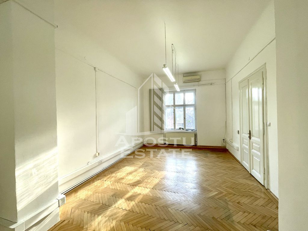 APOSTU ESTATE va ofera spre inchirire spatiu pentru birouri de 140 mp, 4 camere+bucatarie in zona Maria. Spatiul este compartimentat tip circular astfel: -hol acces; -grup sanitar de serviciu; - 4 incaperi pentru birou; - bucatarie spatioasa; - grup sanitar. Spatiul se afla in zona centrala a Timisoarei, zona Maria, intr-o cladire istorica renovata si reabilitata. Dispune de incalzire prin centrala termica pe gaz, clima in fiecare incapere, iar contorizarea utilitatilor este separata. Zona este accesibila pentru parcare, iar in imediat apropiera se gasesc statii de tramvai. Va asteptam cu drag la o vizionare! ID intern: CP1989852