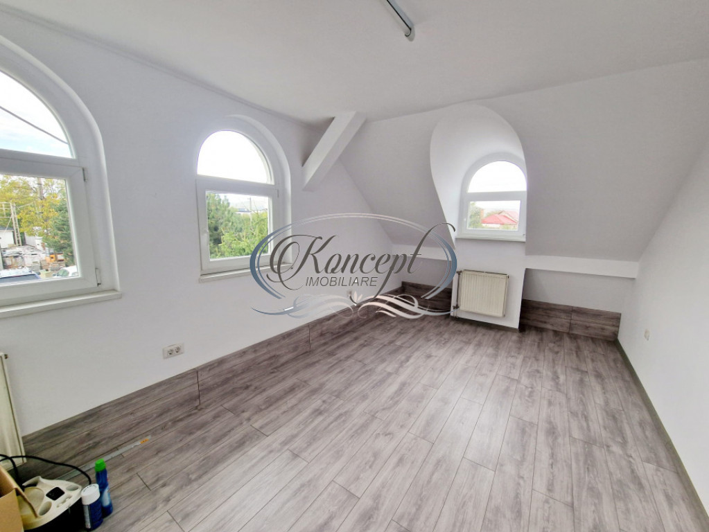 Koncept Imobiliare va propune spre inchiriere un spatiu de birouri situat in cartierul Marasti, in apropiere de Leroy Merlin, intr-o cladire administrativa, la mansarda. Locatia ofera acces facil atat pietonal, cat si auto, fiind deservita de multiple cai de transport si beneficiind de o pozitionare excelenta pentru activitati de business. Imobilul dispune de 150 mp utili, compartimentati in 8 incaperi, cu un grup sanitar si 5 locuri de parcare incluse, existand posibilitatea de a obtine locuri suplimentare. Compartimentarea este fixa, fara optiuni de recompartimentare, dar spatiul este eficient organizat pentru fluxuri de lucru. Exista si optiunea de a inchiria impreuna o hala adiacenta de 100 mp, ceea ce extinde potentialul de utilizare. Finisajele sunt moderne, iluminatul interior este asigurat prin sistem LED, iar incalzirea se face prin centrala termica, garantand un confort optim. Lumina naturala este prezenta intr-un aport moderat, iar designul mansardei creeaza un cadru functional si placut pentru activitati de birou. Spatiul este recomandat pentru firme de contabilitate, proiectare, arhitectura, call center sau logistica, datorita compartimentarii si avantajelor oferite de pozitionare. Este o alegere potrivita pentru businessuri care cauta un mediu profesional intr-o locatie accesibila. Spatiul este disponibil imediat, iar prima inchiriere aduce un plus de valoare prin utilizarea sa exclusiva. Pentru informatii complete, programarea unei vizionari sau pentru a afla oferta noastra completa va stam la dispozitie telefonic, prin e-mail sau la sediul agentiei noastre, pe str. Aviator Badescu, nr. 19, Cluj-Napoca. Id intern: P20837