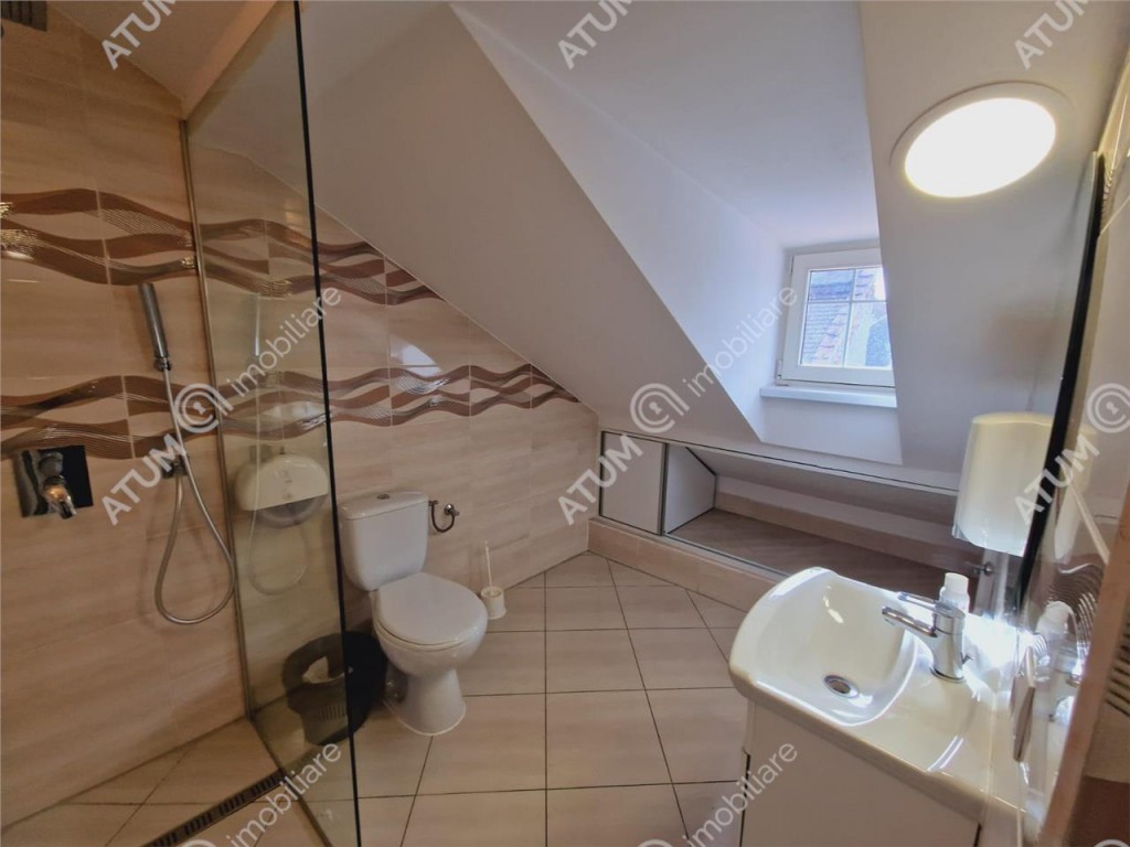 Spatiu pentru birouri de inchiriat in Centrul Istoric al orasului Sibiu orientat Sud-Estic cu acces privat si curte. Situat in zona istorica a orasului spatiul beneficiaza de expunere stradala si acces imediat catre punctele de interes ceea ce il face ideala pentru sediul unei companii, call center, spatiu birouri si multe alte activitati de birou. Imobilul a fost edificat in anul 1878 si renovat in anul 2020, beneficiaza de toate imbunatatirile si dotarile necesare activitatii de birouri (incalzire termica in pardoseala, calorifere din otel si instalatii din cupru, aer conditionat, sistem de alarma, supraveghere video, camera server etc). Spatiul se poare recompartimenta in functie de domeniul de activitate. Spatiul are 340 mp utili, este amplasat intr-o cladire compusa din Parter Mansarda fiind compartimentat astfel: 4 birouri individuale la etajul 1 cu 2 grupuri sanitare si un balcon in suprafata de 5 mp, iar la mansarda un spatiu deschis care poate fi compartimentat, care beneficiaza de grup sanitar si bucatarie mobilata si utilata. Disponibil imediat, acesta se inchiriaza la 2500 euro negociabil plus o luna garantie. !D intern: 2105