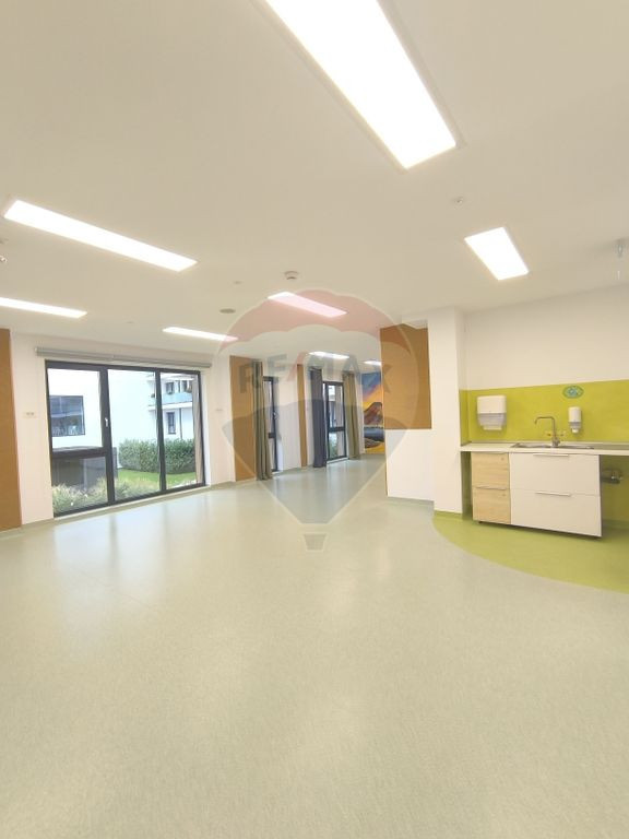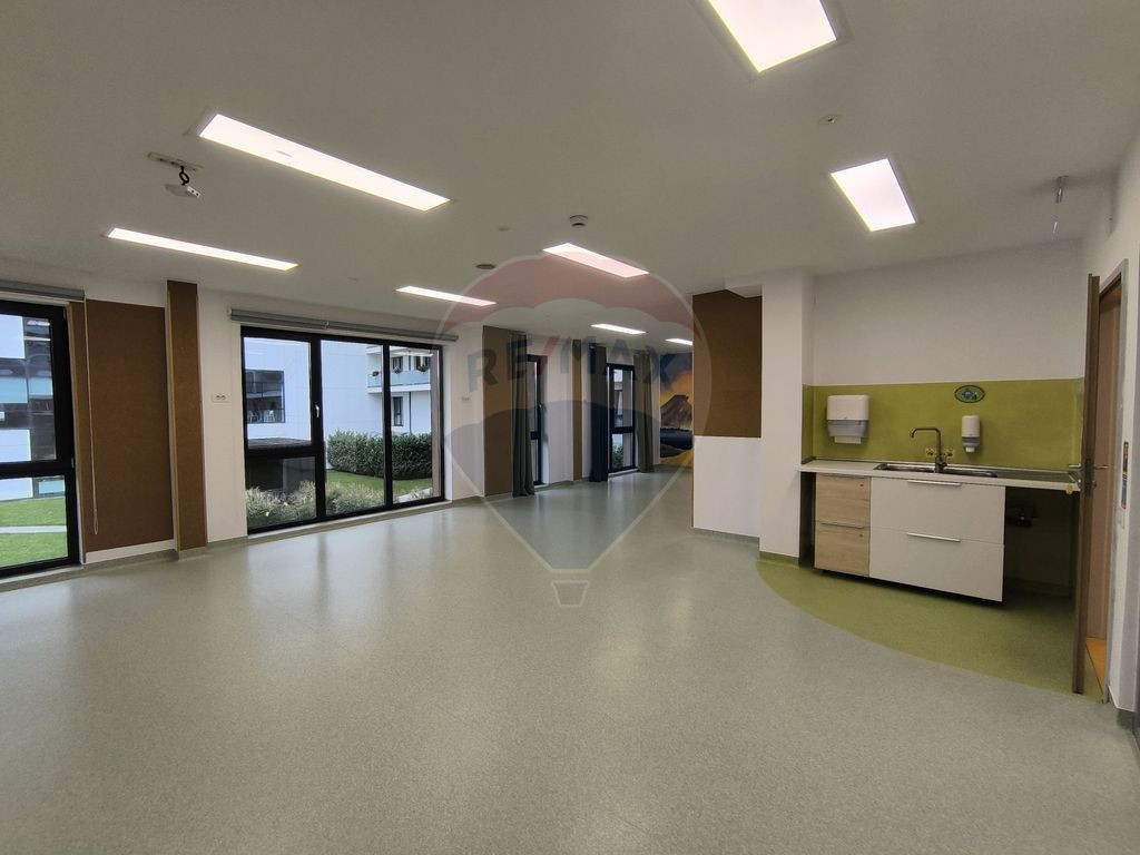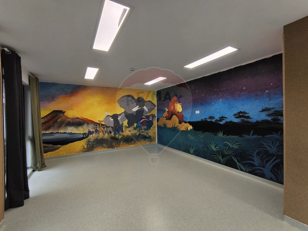 Vă prezentăm spre inchirere un spațiu pentru desfasurarea serviciilor educationanle, modern și elegant, ideal pentru o grădiniță, creșă, școală primară, centru educațional, centru de formare profesională sau clinică pediatrică. Proprietatea se desfășoară pe două niveluri, parter și mezanin și oferă o suprafață utilă generoasă de 575 mp, completată de 197 mp teren împrejmuit și 6 locuri de parcare în subsol, facilități care susțin în mod optim funcționarea unei unități educaționale premium. Un element distinctiv îl reprezintă pereții pictați manual de artiști locali, care conferă o notă de rafinament și creativitate. În plus, întreaga suprafață este finisată cu vopsea lavabilă cu ioni de argint, ce asigură un mediu mai sănătos și igienic pentru copii. Compartimentarea spatiului – Parter - hol generos cu design contemporan și tobogan integrat, pentru un mediu atractiv și interactiv; - recepție modernă; - sală de clasă; - sală de sport multifuncțională; - două grupuri sanitare (copii și adulți); - cabinet medical; - sală destinată personalului didacti; - un spatiu tehnic; Compartimentare – Mezanin - hol amplu; -trei săli de clasă; -sală destinată personalului didactic; -birou pentru director; -două grupuri sanitare pentru copii; -grup sanitar pentru adulți; -spații dedicate depozitării și organizării; Spațiul beneficiază de pompa de căldură, încălzire și răcire prin pardoseală, climatizare eficientă, precum și de un design interior ce îmbină estetica modernă cu funcționalitatea. Proprietatea se predă la cheie, cu finisaje de calitate superioară, gata pentru a fi utilizată. Chiria lunară este completată de cheltuieli administrative, respectiv chiria lunara inglobeaza si serviciile de verificare, reglare si intretinere perioadica a intregului sistem de incalzire/racire in pardoseala, a prepararii apei calde menjere, insalatiile electrice, antiefractie, sistemul video de supraveghere, toate acestea fiind efectuate de inginerii calificati. Chiria NU contine utilitatile care se refactureaza, conform consumului real si al tarifelor practicate de Electrica, respectiv de Regia de apa, toate contorizate separat si internetul de mare viteza. Apa calda menajera si incalzirea este produsa local cu aparate moderne, eficiente energetic si nu se factureaza. Această ofertă se adresează operatorilor care caută un spațiu reprezentativ și complet funcțional, pregătit să găzduiască activități educaționale la standarde înalte. Va invitam cu drag sa ne treceti pragul si sa programati o vizionare!