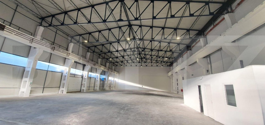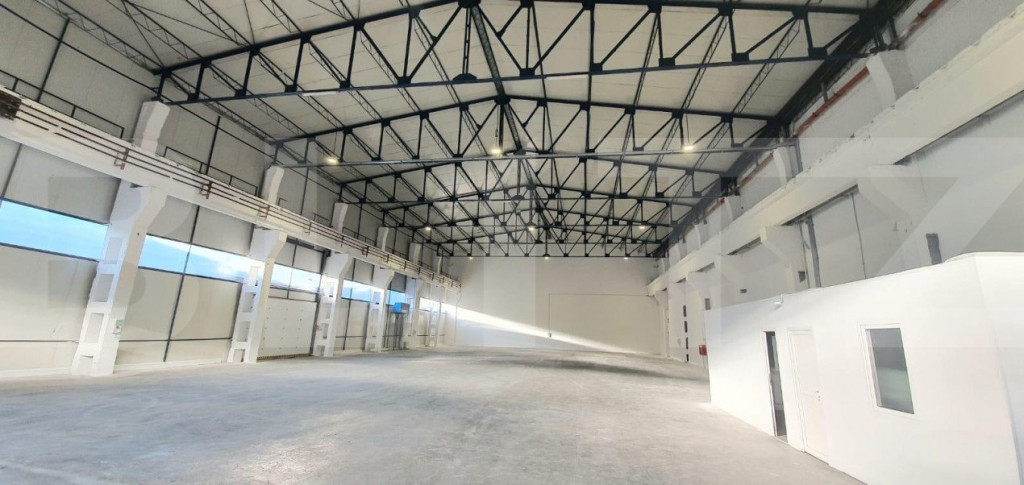 BLITZ Imobiliare va propune inspre inchiriere hala cu suprafata de 1150 mp, construita din panouri de tip sandwich pe fundatie de beton,. Acces tir, rampa. Inaltimea la mijloc de 8 m. Suprafata de birouri 28 de mp plus grupuri sanitare. Hala are pod rualnt care necesita re-iSCIR-izare. Dispune de 2 accese de tip rampa si acces pietonal de la nivelul solului. Conditii excelente. Cod ofertă / ID BLITZ: P97296 Id intern: P97296