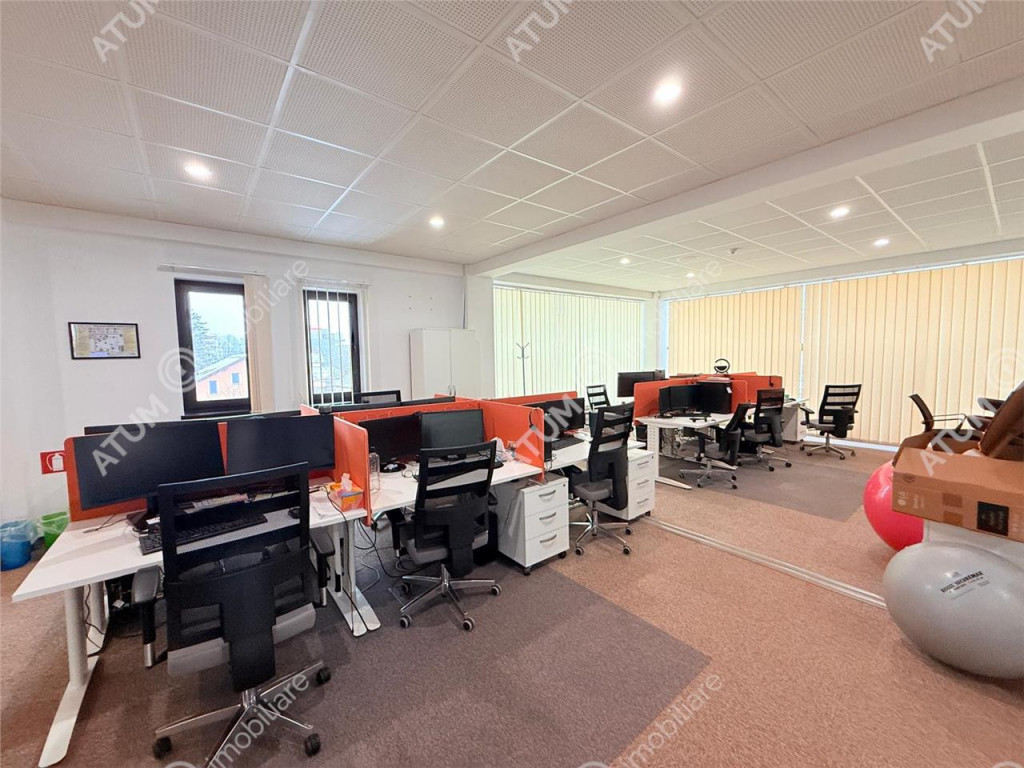 Va propunem spre vanzare o cladire cu destinatie comerciala si de birouri, situata in Sibiu, zona Vasile Milea, una dintre cele mai dinamice si bine cotate zone din oras din punct de vedere al activitatilor economice si al accesibilitatii. Proprietatea este amplasata pe un teren de 890 mp, cu deschidere la doua strazi, aspect care ofera vizibilitate foarte buna, acces facil si posibilitati multiple de organizare a fluxurilor de clienti si personal. Cladirea este construita in anul 2010 si are regim de inaltime Parter plus doua etaje si etaj retras, insumand o suprafata utila de aproximativ 1015 mp si o suprafata construita de aproximativ 1400 mp. Parterul este amenajat ca spatiu comercial si in prezent functioneaza ca si clinica medicala, fiind configurat pentru activitati cu trafic de clienti, receptie si cabinete. Etajele 1 si 2 sunt destinate spatiilor de birouri si sunt compartimentate astfel incat sa permita atat functionarea unor firme individuale, cat si organizarea unor sedii de companie, fiecare nivel beneficiind de doua grupuri sanitare si spatii de depozitare. Etajul retras este amenajat ca zona de relaxare si bucatarie, cu acces direct catre o terasa generoasa de aproximativ 250 mp, un spatiu ideal pentru evenimente corporate, zona de relaxare pentru angajati sau amenajare alternativa in functie de necesitati. Accesul in cladire este bine gandit, existand doua intrari separate, una dedicata parterului si activitatilor comerciale si o a doua intrare pentru etajele superioare, ceea ce permite functionarea independenta a diferitelor activitati din interiorul imobilului. Compartimentarea interioara este flexibila si poate fi adaptata in functie de domeniul de activitate, spatiile putand fi reorganizate atat in sistem open space, cat si in birouri individuale, cabinete sau zone mixte. Cladirea beneficiaza de contorizare separata si sisteme de incalzire independente pentru fiecare nivel, oferind control eficient al costurilor si posibilitatea inchirierii pe etaje sau compartimente distincte. Constructia este realizata pe structura solida, cu finisaje moderne si instalatii adaptate cerintelor actuale pentru activitati comerciale si de birouri, iar pozitionarea in apropierea principalelor artere de circulatie asigura acces rapid catre toate zonele importante ale orasului. Proprietatea se preteaza pentru o gama larga de activitati precum clinici medicale, sedii de firma, centre de servicii, institutii private, showroom-uri sau spatii comerciale, oferind un echilibru foarte bun intre vizibilitate, functionalitate si suprafata disponibila. Prin prisma veniturilor potentiale din inchiriere si a gradului ridicat de ocupare pe care il poate sustine, investitia in aceasta cladire poate fi amortizata intr-un interval estimativ de pana la 15 ani, ceea ce o transforma intr-o oportunitate atractiva atat pentru utilizare proprie, cat si pentru investitie pe termen lung. Valoarea imobilului este de 1690000 euro, negociabil. ID intern: 3379.