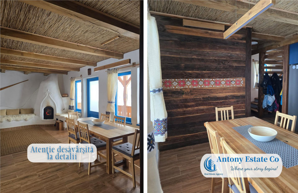 COD:DC Va propunem spre vanzare o casa noua traditionala, construita integral din lemn de stejar vechi, situata in localitatea Rosia, judetul Bihor, intr-o zona linistita, cu multa verdeata si intimitate deplina. Casa are o suprafata utila de 220 mp si este finalizata in anul 2026, fiind realizata din grinzi masive de stejar vechi, imbinand perfect stilul traditional autentic cu dotarile moderne pentru un confort ridicat. Imobilul este construit pe un teren generos de 28.000 mp, dintre care circa 15.000 mp sunt intravilan, oferind posibilitati multiple de utilizare: locuinta permanenta, casa de vacanta, retreat, agropensiune sau investitie turistica. Proprietatea este compartimentata astfel: Demisol (60 mp): - 1 camera tehnica - 1 birou - 1 camara pentru alimente cu rafturi - Tablou electric trifazic - Sistem de filtrare a apei - Boiler pentru panoul solar Parter terasa (80 mp): living open-space cu bucatarie baie de serviciu terasa spatioasa Mansarda (80 mp): 3 camere 1 baie mare dotata cu jacuzzi Pod (20 mp): spatiu izolat si finisat, ideal pentru depozitare sau camera suplimentara Dotari si finisaje: - tamplarie termopan din lemn stratificat de pin - senzori inteligenti pentru monoxid de carbon, fum, inundatii, temperatura si umiditate - incalzire in pardoseala la parter - soba traditionala cu recuperare de caldura - panouri solare cu tuburi vidate si boiler de 250 l pentru apa calda - electrocasnice moderne incluse Proprietatea dispune de utilitati complete, acces facil pe drum asfaltat si pietruit si se vinde complet echipata si utilata, inclusiv cu amenajarile exterioare existente. Se accepta toate modalitatile de plata (plata integrala sau credit). Imobilul este liber de orice sarcini. Oferim clientilor nostri: - consultanta financiara si juridica; - asistenta in obtinerea creditelor ipotecare; - echipa de meseriasi (zugrav, instalator, electrician), totul sub contract legal si la termen; - servicii de design interior, asigurari si evaluari proprietati. -Informatiile tehnice au caracter orientativ, acestea fiind preluate de la proprietar.- Antony Estate CO ndash; Where your story begins!