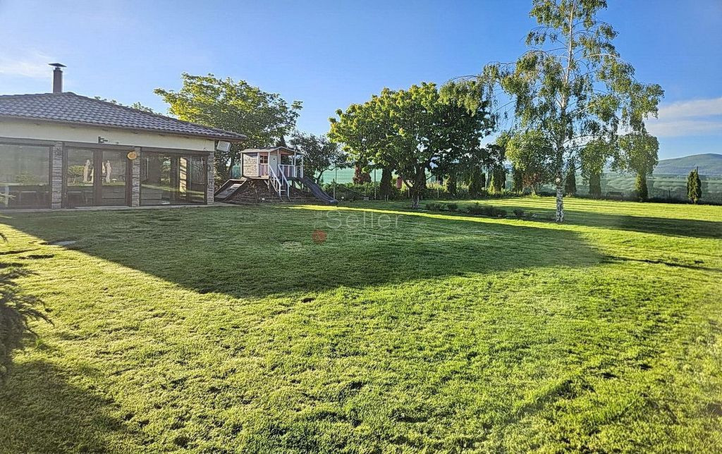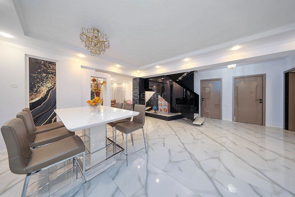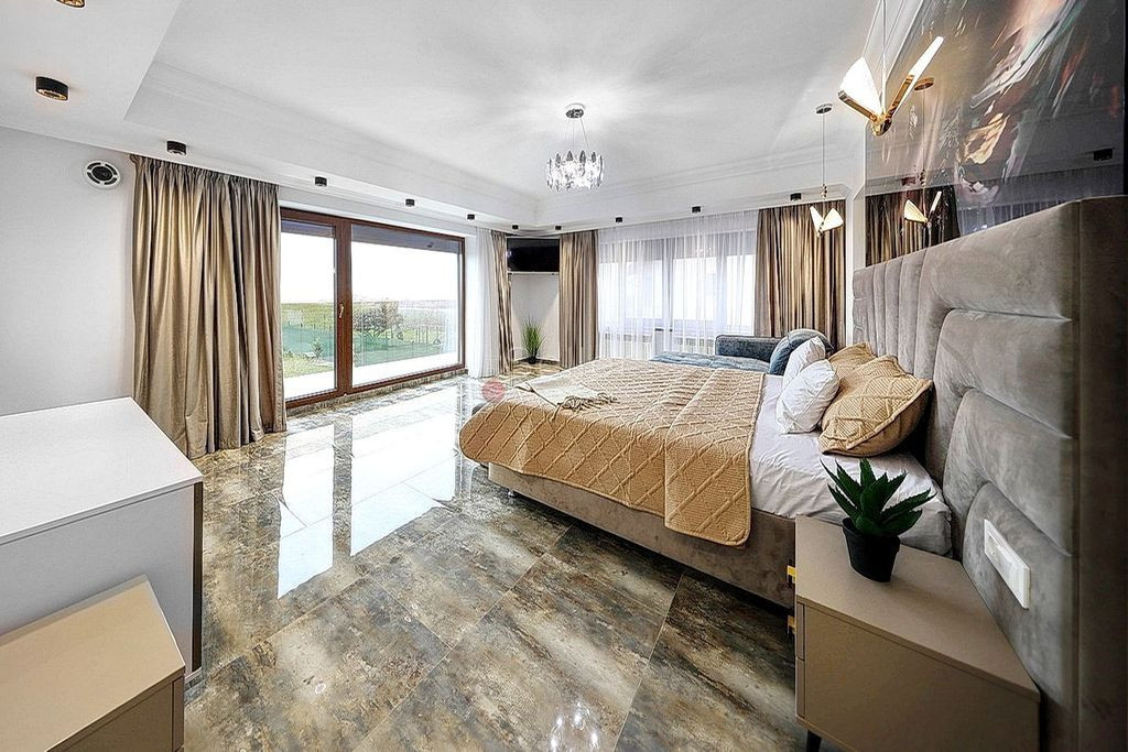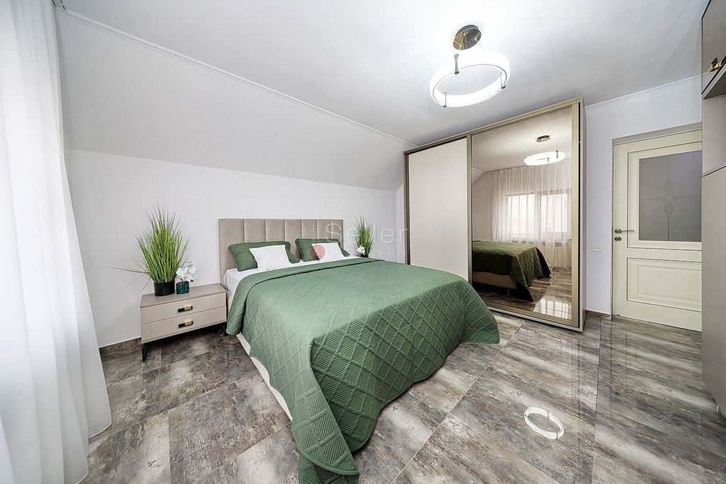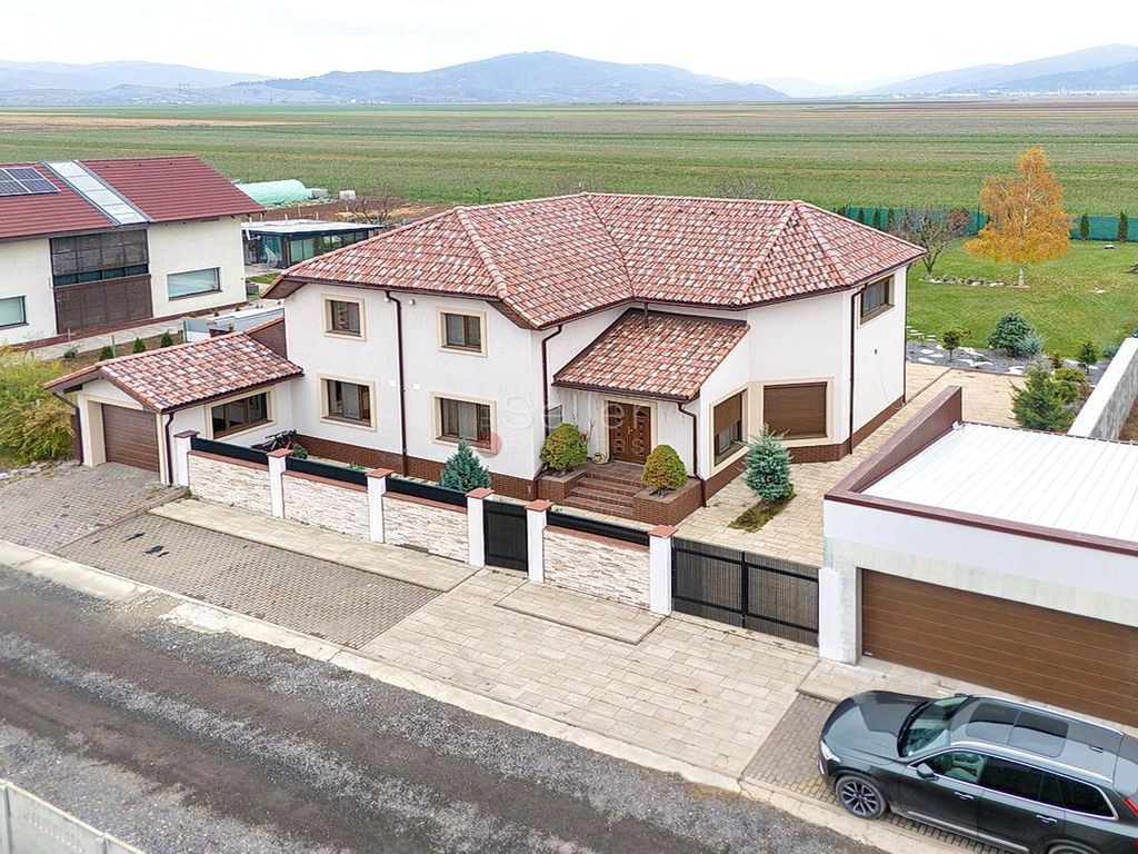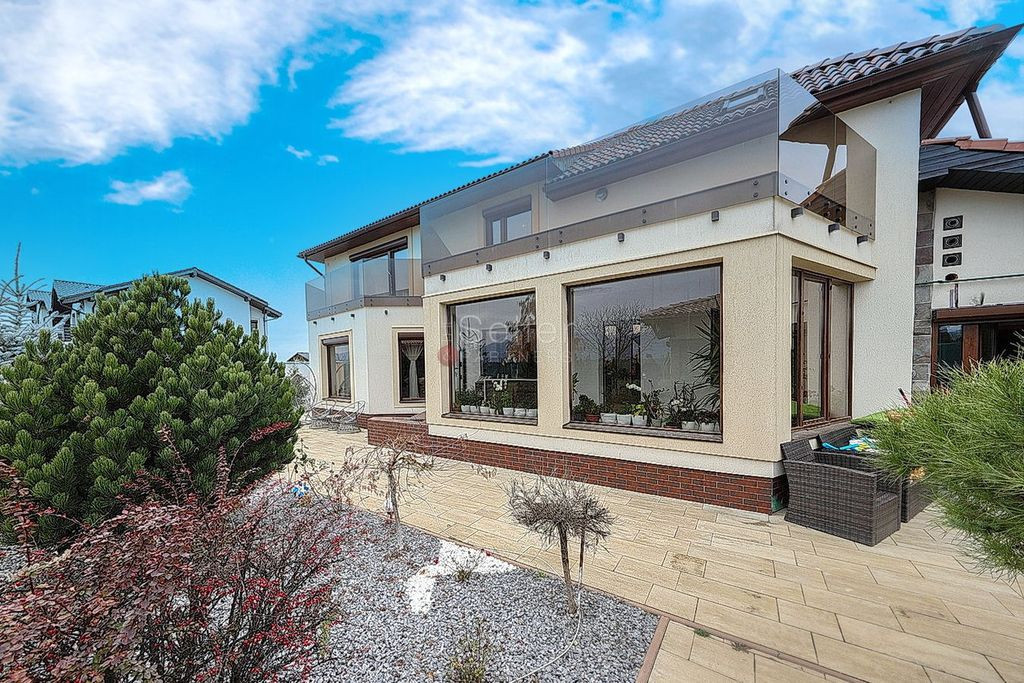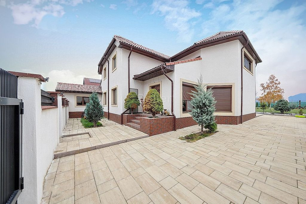 Ati accesat un imobil situat in Sacele. LOCALIZARE: Proprietatea propusa este una deosebita, fiind pozitionata intr-o zona linistita, de case, vis-a-vis de cartierul Izvor. COMPARTIMENTARE: Dispus pe doua niveluri, imobilul are urmatoarea compartimentare: PARTER - holul de acces, acesta deservind toate incaperile; - living-ul, care detine suprafete vitrate ample, cu orientare spre gradina si zona de acces a casei; - bucatarie recent renovata si mobilata, este de tip open-space, impreuna cu locul de luat masa incorporat si zona de zi, detinand acces spre terasa si gradina. - dormitor, cu suprafata generoasa; - o camera cu destinatie birou sau dressing, din care se face acces spre unul din garaje; - baia, care dispune de acces din living si de inca unul, din zona de sauna; - sauna dotata cu dus, cu acces la gradina; - intreaga suprafata aferenta parterului beneficiaza de sistem surround; ETAJ Acest nivel este alocat zonei de noapte, incluzand: - scara dotata cu balustrada din sticla securizata; - 4 dormitoare si doua bai, dispuse astfel: - 1 dormitor cu baie si terasa proprii; - 1 dormitor cu dressing si terasa proprii; - 2 dormitoare cu suprafete generoase; - 1 baie, care deserveste cele 3 dormitoare. Ambele terase, aferente celor doua dormitoare, detin balustrada cu sticla securizata. De pe acest nivel se face accesul la pod. DOTARI: - centrala termica, Viessmann, sistem de dedurizare a apei, boiler electric, sistem de filtrare a apei; - tamplarie PVC, cu geam termopan; - 2 garaje cu porti automatizate; - 4 locuri de parcare, in curte; - 525mp suprafața teren; - fosa septica; - butelie pe gaz, 4000l; - incalzire mixta, pardoseala si calorifere; - toata suprafata casei detine placi portelenate, ceramice; Optional terenul poate fi extins, cu o suprafata de 908 mp. IMPREJURIMI: Proprietatea este situata intr-o zona cu dezvoltari noi, de case. Accesul auto, pana in Brasov, se poate face in cca. 10 minute. Comision intermediere 2%+TVA. Se accepta achizitionarea prin accesarea unui credit bancar.