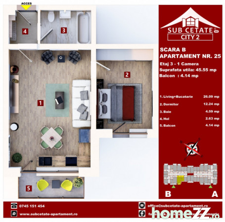 Suprafață generoasă: 45 mp utili, oferind un confort și un spațiu optim pentru întreaga familie.
