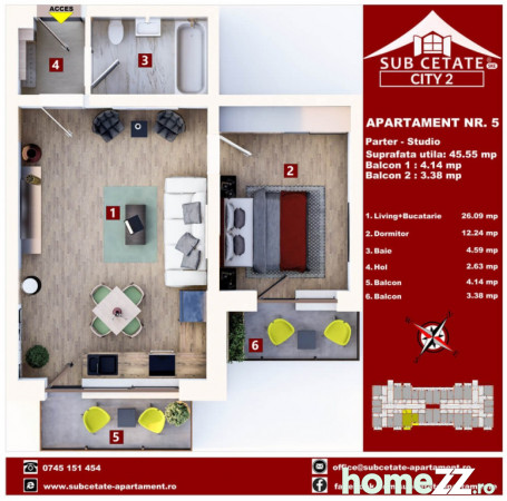 Suprafață generoasă: 45 mp utili, oferind un confort și un spațiu optim pentru întreaga familie.