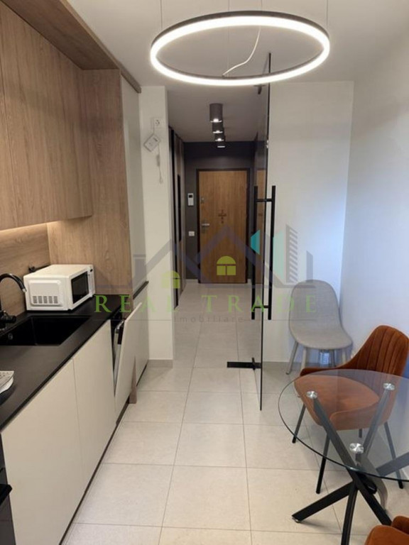 Va propunem spre vanzare o garsoniera amenajata, situata in complexul Urban Plaza, la etajul 2, cu orientare sudica. Suprafata utila de 41 mp, proprietatea este compusa din zona de dormit separata si living , delimitat prin pereti din sticla. Dotari: mobilier pe comanda MDF vopsit, usi filo muro, bucatarie complet echipata, baie cu finisaje premium, iluminat arhitectural. Loc de parcare disponibil separat. Proprietatea este libera, gata de mutare, si se accepta credit. Ideala pentru locuit sau investitie. Pentru detalii suplimentare si vizionare, va rugam sa ne contactati ID intern: RTI7570