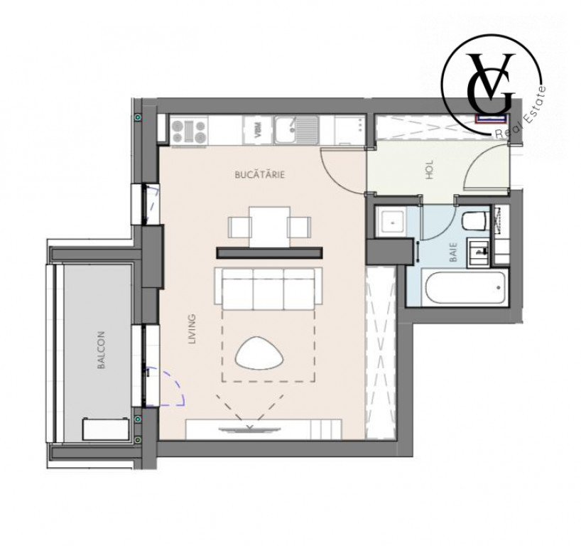 • Tipul apartamentului: 1 camera, tip: open-space.