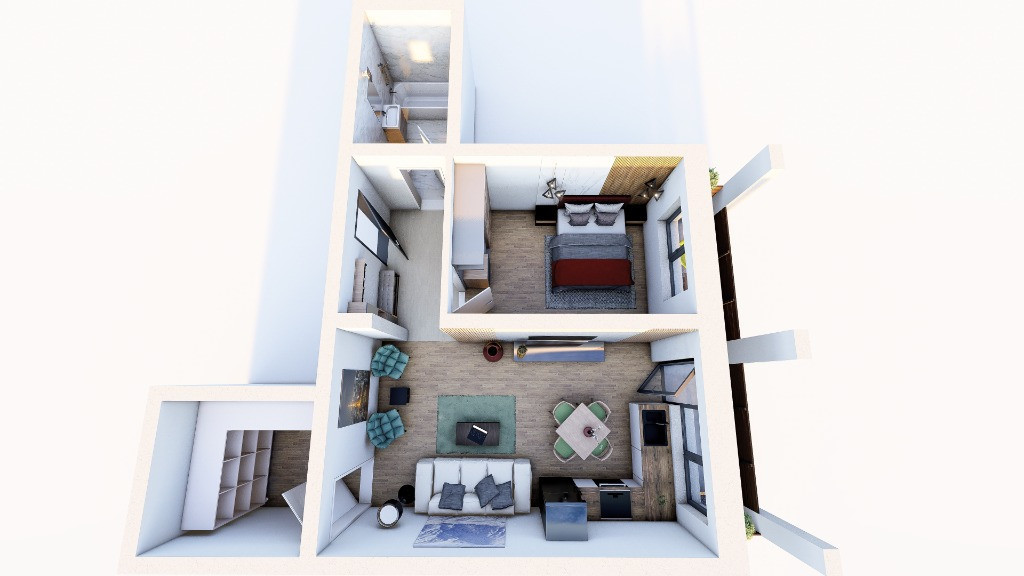 Spațiu generos: Cei 51 mp sunt compartimentați inteligent pentru a oferi funcționalitatea unui apartament modern într-un format compact și ușor de întreținut.