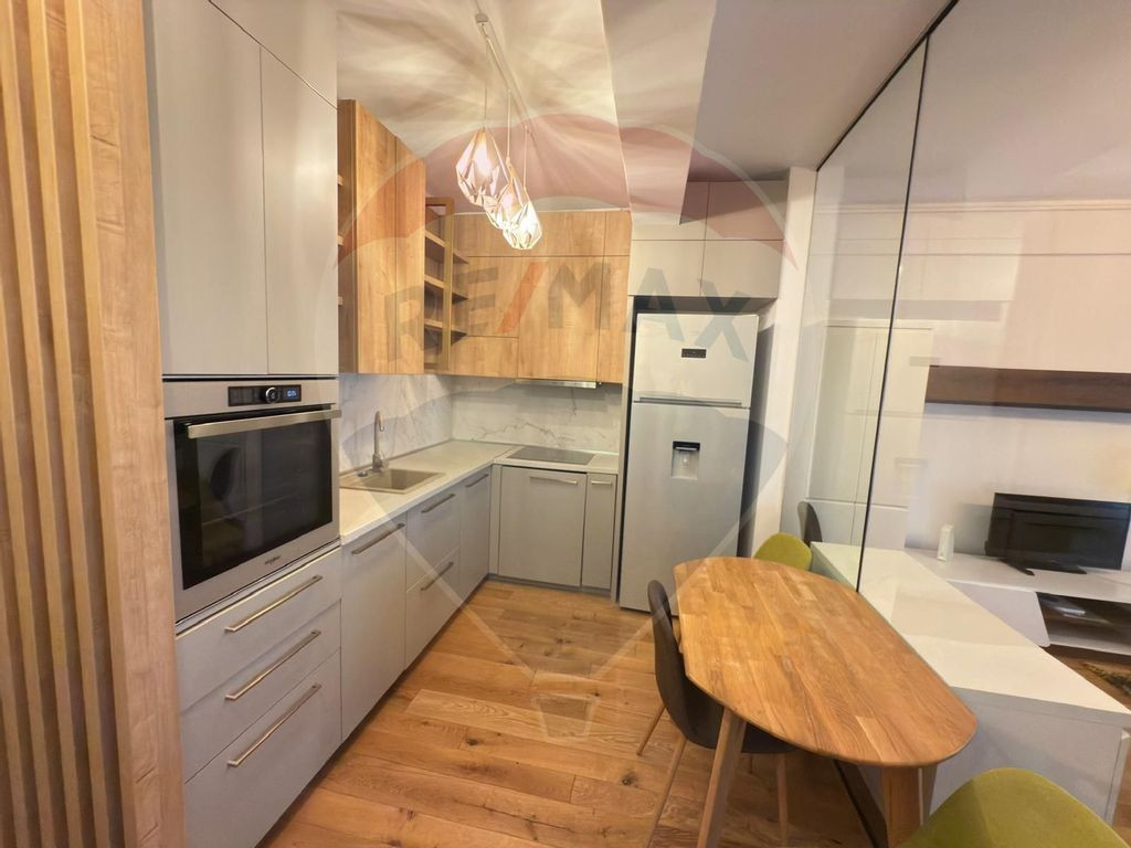 Va prezentam un apartament de inchiriat luminos, foarte bine compartimentat in zona AVIATIEI. Studio modern situat in Aviatiei Apartments, una dintre cele mai moderne si sigure zone din Bucuresti, excelent conectata la mijloacele de transport si la principalele puncte de interes. Apartamentul este ideal pentru tineri profesionisti sau cupluri, fiind complet mobilat si utilat, gata de mutat. Detalii apartament: Suprafata totala: 46.99 mp Suprafata utila: 41.36 mp Terasa: 5.63 mp Compartimentare: Leaving (27.57 mp) Bucatarie separata (6.84 mp) Baie (3.75 mp) Hol (3.20 mp) Dotari si beneficii: Mobilier modern, nou Electrocasnice noi : masina de spalat vase, masina de spalat rufe,TV Confort termic ridicat Cladire noua, zona sigura Localizare excelenta, aproape de: Promenada Mall Metrou Aurel Vlaicu / Pipera Zone de birouri, sali de sport, parcuri Supermarketuri ( LIDL la o distanta de 2 minute), restaurante, cafenele Disponibil imediat! Contactati-ne pentru o vizionare!