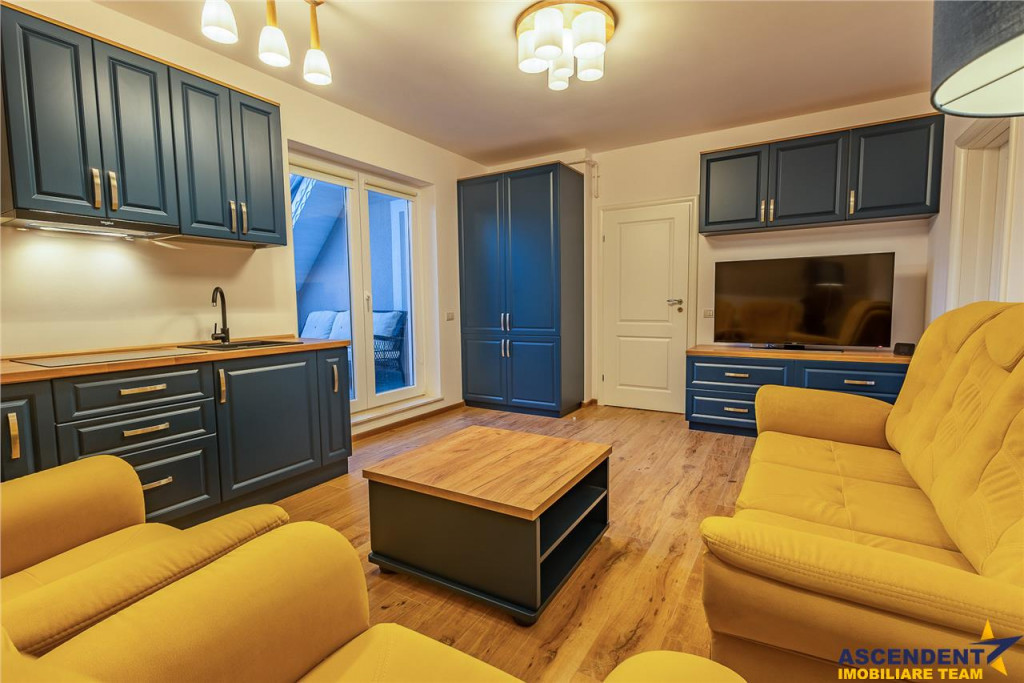 Comision chirias: 50% TVA, din contravaloarea unei chirii, o singura data ASCENDENT IMOBILIARE este onorata sa va propuna spre inchiriere o proprietate remarcabila, regim vila, pozitionata in apreciatul areal Tractorul nou, Brasov, strada Nicolae Labis. Va invitam sa experimentati o vizionare initiala, din locatia unde va aflati, chiar acum, prin accesarea turului virtual si a filmului de prezentare: Tur virtual tridimensional: https://my.matterport.com/show/?m=Z8mGvDm7wfB Film Prezentare: https://www.youtube.com/watch?v=Aqpzk4ar458 Desfasurat pe o compozitie particulara in 40 mp utili 21 mp terase boxa pod spatiu garaj. Living armonios asezonat in tonuri calde si o bucatarie open space. Dormitorul, elegant si primitor, ofera acces direct la o terasa secundara, in timp ce baia impresioneaza prin rafinament si functionalitate. Terasa principala, discret pozitionata dispune actualmente si de *jacuzzi performant*( !!!!acesta din urma poate fi inchiriata, extra pretul expus!!!!!!). Finisajele interioare au fost atent selectionate si lucrate. In plus spatiul suplimentar de depozitare de tip boxa reprezinta un avantaj semnificativ pentru organizarea eficienta a locuintei. Rezidenta detine si pod propriu, adaugand plus versatilitate acesteia, recomandat pentru depozitiarea articolelor sesoniere. Incaperea amintita mai sus contribuie si la imbunatatirea izolatiei termice si fonice a locuintei, pastrand temperatura interioara constanta si reducand zgomotele exterioare. Locul de parcare subteran, cu acces automatizat, ofera legatura directa cu interiorul cladirii, asigurand un confort sporit. Infrastructura locala ne vine si ea in intampinare, oferind acces facil catre toate punctele de interes local, gen: Coresi Mall, parcuri, mijloace de transport etc. Certificat Energetic proprietate: Cladire certificata clasa B consum anual specific de energie [KWh/mp/an] 130.37 Indice de emisii echivalent CO2 [KgCO2/mp/an] 27.56 Consum anual specific de energie din surse regenerabile [kWh/msup2;an] 0 Desigur ca particularitatea ofertei si detaliile particulare, ce o configureaza, invita la cunoasterea in detaliu! Detalii si fotografii suplimentare si alte variante similiare exclusive: www.ascendentimobiliare.ro