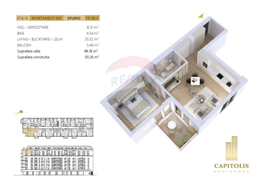 Suntem bucuroși să vă prezentăm un nou proiect rezidențial amplasat pe strada I.C. Brătianu, nr. 39, cartier Tractorul. Blocul , cu un regim de înălțime S+P+6E+7R , include 76 de apartamente ce vor fi predate la finalul anului 2026. Toate apartamentele din imobil vor beneficia de încălzire prin pardoseală și vor fi orientate către Est, Sud și Vest, pentru ca viitorii locatari să se poată bucura de o priveliște de vis prin geamurile panoramice asupra munților Tâmpa, Postăvarul, Piatra Mare, Ciucaș, Bucegi și Făgăraș. Izolatia imobilului va fi realizată cu vată minerală de 15cm pentru o eficiență termică excepțională, asigurând costuri reduse la căldură pe toată perioada iernii. Iată câteva avantaje pe care le veți găsi în acest proiect: • Spații comerciale la parter – market, farmacie, birouri • Loc de joacă pentru copii • Peisagistică creată pe 900 mp de spații verzi • Gama variată de apartamente, de la studio-uri spațioase, la apartamente de 2, 3 și 4 camere sau penthouse-uri • Arie supravegheată video • 48 de parcări subterane și 37 de parcări supraterane • Stații de încărcare pentru mașini electrice • 36 boxe de depozitare • 2 lifturi moderne • Compartimentări interioare din cărămidă • Geamuri panoramice cu 3 foi de sticlă • Finisaje premium și obiecte sanitare de calitate superioară în colaborare cu Delta Studio • Panouri fotovoltaice și panouri solare termice pentru a reduce costurile de întreținere a locatarilor. Capitolis Residence, un proiect rezidențial prietenos cu mediul, care își propune să reducă semnificativ emisiile de carbon și să minimizeze cheltuielile viitorilor proprietari. Țelul nostru este să oferim locatarilor echilibrul perfect între confort și sustenabilitate. *Prețul afișat nu include TVA și este valabil pentru plata în tranșe. **Parcare exterioară de la 12.450 euro + TVA Parcare subterană de la 17.700 euro + TVA Boxă: de la 2.300 euro/mp + TVA