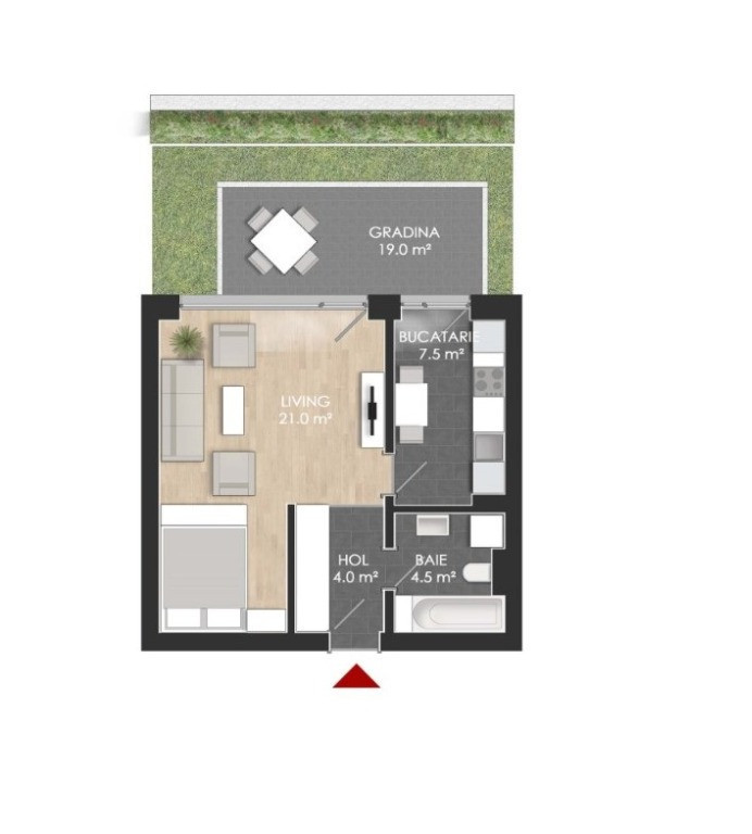 Va prezentam apartamentul nr. 003, Finalizat, modelul 1A - Tip Studio Dublu (poate fi amenajata o zona pentru dormitor) cu Grădină Proprie din Faza 3 de la Atria Urban Resort (Șos. Chitilei Nr. 242, București, Sect. 1). ** Se preda finisat la cheie, nemobilat. *** Prețul este final. Apartamentul nr. 3 are o suprafata totala utila de 37 mp si este compus din : 1 camera de 21 mp utili, 1 bucatarie inchisa de 8 mp utili, 1 baie finisata si utilata complet, hol de acces de 4 mp utili, o grădină proprie de 19 mp. Apartamentul va detine finisaje de calitate si se va vinde finisat la cheie. Vino sa vizionezi un apartament tip studio spatios, luminos, pozitionat la Parter în cladirea C1 din Faza 3 de la Atria - proiect rezidential multiplu premiat, din zona de Nord a Bucurestiului, recunoscut si apreciat pentru raportul excelent calitate-pret, regimul mic de inaltime al cladirilor, regenerarea urbana cu sute de copaci plantati, o comunitate puternica. Faza 3 a fost finalizată în Toamna 2024. Acesta respecta standardul nZEB – adica o casa cu consum de energie aproape de zero – Cladirile din Faza 3 sunt evaluate energetic A, s-au instalat aproape 300 de panouri solare care vor produce energie pentru incalzirea apei menajere, apartamentele vor fi dotate cu sisteme de ventilatie cu recuperatoare de caldura, iar izolatia termica a peretilor exteriori a fost marita. Faza 1 si Faza 2 sunt finalizate si locuite de peste 2 ani. 1800 de rezidenți, majoritatea familii tinere locuiesc deja în complexul rezidențial Atria Urban Resort. Atria Urban Resort este un complex rezidential inedit, cu regim mic de inaltime, cladiri de 4 etaje si 6 etaje, situat pe Soseaua Chitilei Nr 242, Sector 1, Bucuresti (chiar langa ATAC HiperDiscount by Auchan & Lacul Străulești. În vecinătate: Mall Collosseum cu restaurante, cinematograf, sala de fitness; școli, grădinițe, magazine). FINISAJE : Ferestre cu geam termopan: Profil PVC Salamander, tip Green Revolution MD cu geam tripan, deschidere oscilo-batante Stare interior: Nou – se va preda finisat la cheie Usi interior: Pinum Celulare, culoare alba, cu pervaz, feronerie cromata Usa intrare: Pinum Metalica, culoare alba Izolatii termice: Exterior Pereti interiori : pereti de caramida Porotherm de la Wienerberger + tencuiala mecanizata ; La bai peretii sunt din gipscarton. Podele: Gresie Kai de calitate superioara, Parchet laminat Egger – clasa 32 uz comercial, Incalzire in pardoseala Uponor cu agent termic Pereti: Faianta, Vopsea lavabila Intrerupatoare si prize: da – Legrand, siguranțe Gewiss Obiecte sanitare: da – Ideal Standard UTILITĂȚI: Utilitati generale: Curent, Apa, Canalizare, Gaz, CATV Sistem incalzire: Centrala termica proprie Bosh, Incalzire prin pardoseala Kermi Acces internet: Fibra optica DOTĂRI : Alte spatii utile: Gradina cu terasa Contorizare: Contor gaz, Apometre Mobilat: Nemobilat Dotari imobil: Spatii agrement, Piscina exterioara, Lift, Interfon, Acoperis, Parcuri comune, Locuri de joaca pentru copii, Alei, Spatii verzi libere Servicii imobil: Supraveghere video, bariera acces, paza umana Alte detalii zona : Amenajare strazi: Asfaltate ; Iluminat stradal ; Mijloace de transport in comun, supermarket, hipermarket, magazine, restaurante, piata, scoli, gradinita