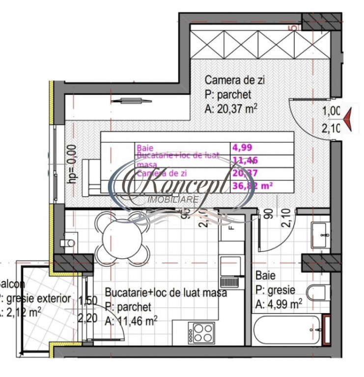 Koncept Imobiliare va ofera spre vanzare un apartament cu o camera situat pe strada Soporului, la etajul 7 al unui imobil modern aflat in curs de finalizare. Proprietatea beneficiaza de o panorama frumoasa si de orientare vestica, oferind lumina naturala pe tot parcursul dupa-amiezii, intr-o zona in plina dezvoltare, apreciata in special de tineri datorita proximitatii fata de Iulius Mall, parc si alte facilitati ale zonei. Apartamentul are suprafata utila de 38,82 mp, la care se adauga un balcon de 2,12 mp, fiind compartimentat eficient intr-o camera spatioasa cu bucatarie open space, baie, hol si balcon. Se preda la stadiu semifinisat, oferind posibilitatea viitorului proprietar de a-si personaliza complet interiorul. Unul dintre principalele avantaje ale acestui apartament este pozitionarea la un etaj superior, care asigura o panorama deschisa si un nivel ridicat de intimitate, alaturi de orientarea vestica ce contribuie la un ambient cald si luminos. Suprafata bine optimizata permite amenajarea unui spatiu modern si functional, iar proximitatea fata de puncte de interes majore precum centre comerciale si zone de recreere creste atractivitatea proprietatii. Optional, se poate achizitiona loc de parcare subteran. Datorita locatiei cautate si al imobilului cu infrastructura moderna, apartamentul este o alegere excelenta pentru investitie, fiind potrivit pentru inchiriere pe termen lung, cu un randament bun, dar si pentru locuinta personala pentru o persoana sau un cuplu tanar. Pentru informatii suplimentare, programarea unei vizionari sau pentru a afla oferta noastra completa va stam la dispozitie telefonic, prin e-mail sau la sediul agentiei noastre, pe str. Aviator Badescu, nr. 19, Cluj-Napoca. Id intern: P21290